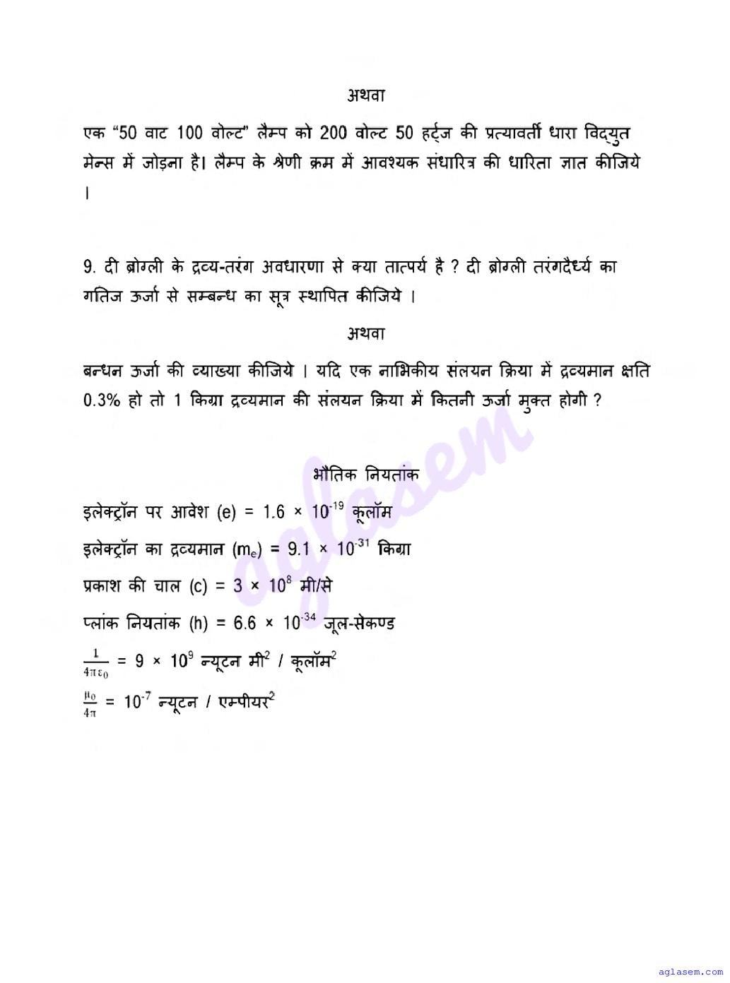 | Study Material Here | UP Board Previous Year Question Paper of Class 12 Physics |