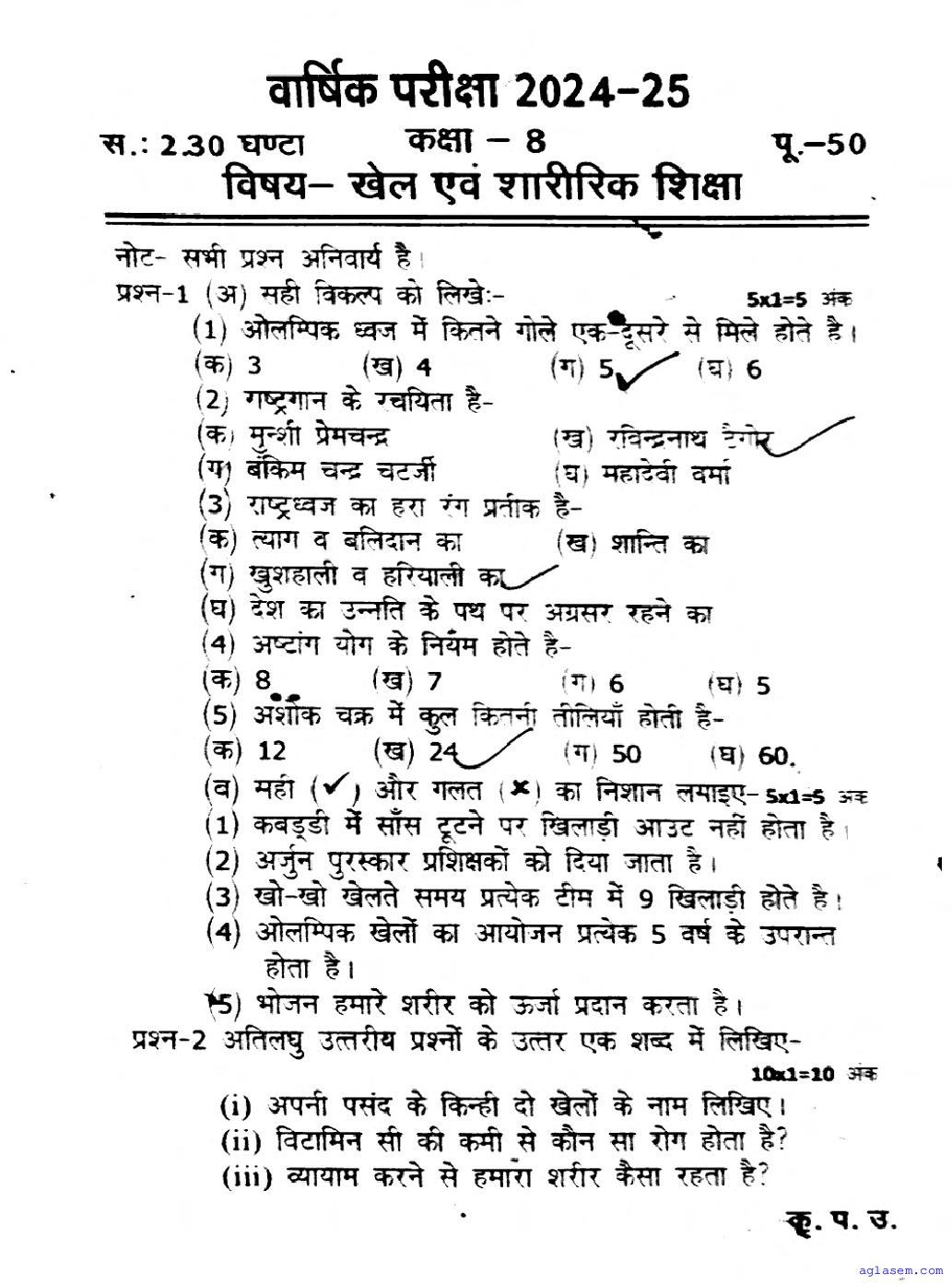 | Study Material Here | UP Board Previous Year Question Paper of Class 8 Sports and Physical Education |