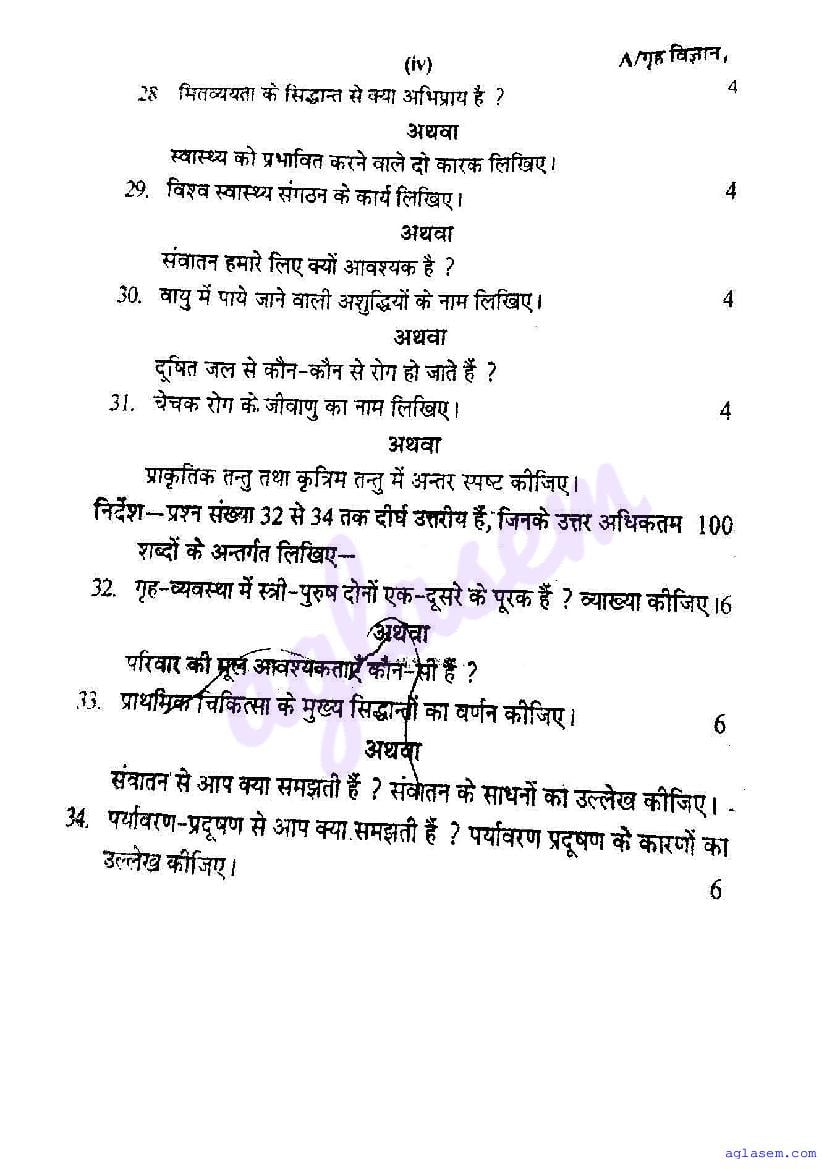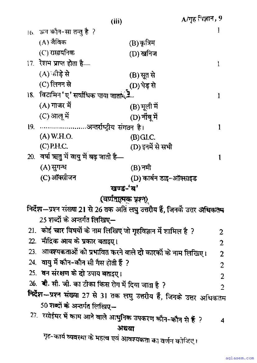 | Study Material Here | UP Board Previous Year Question Paper of Class 9 Home Science |