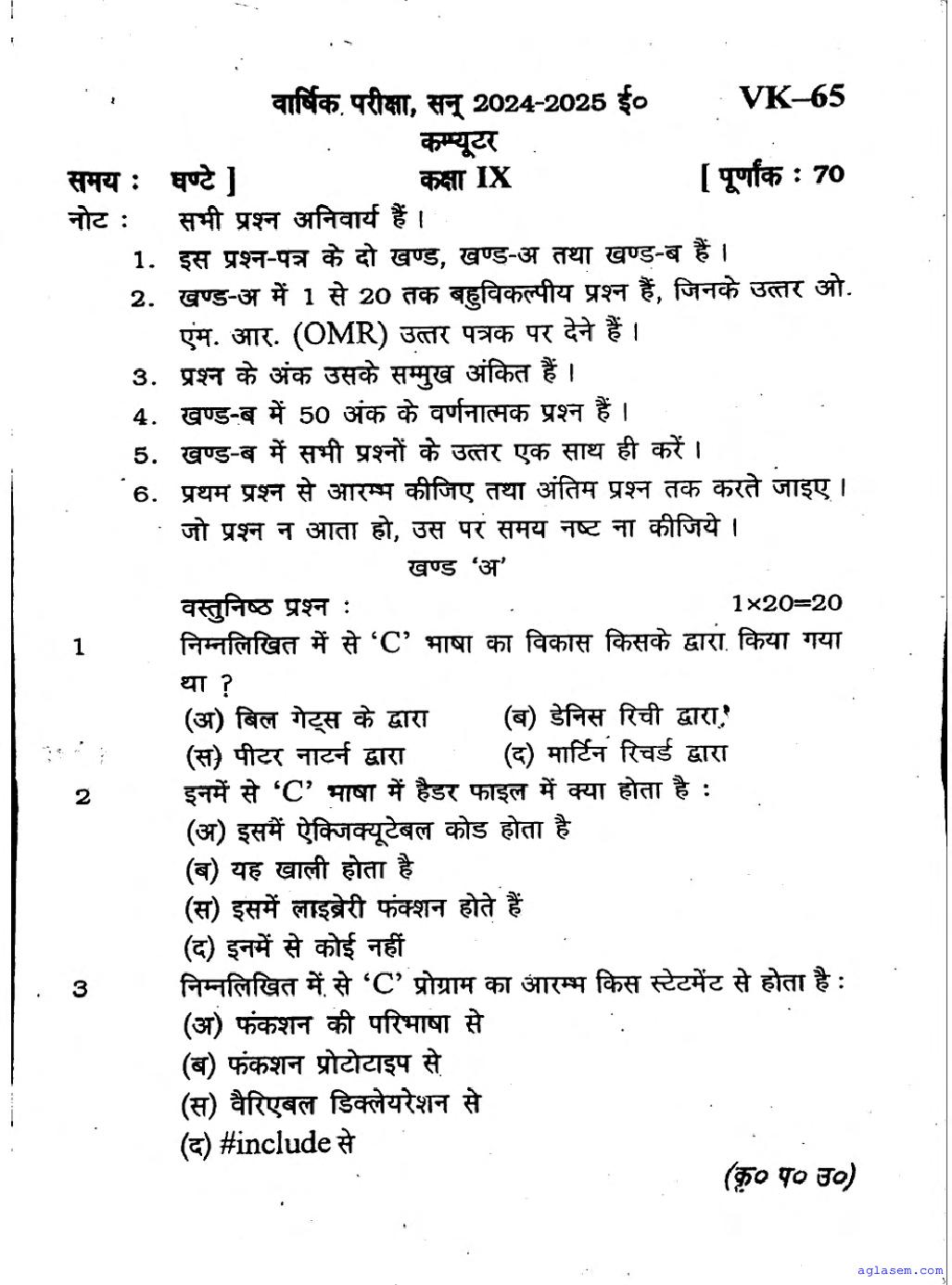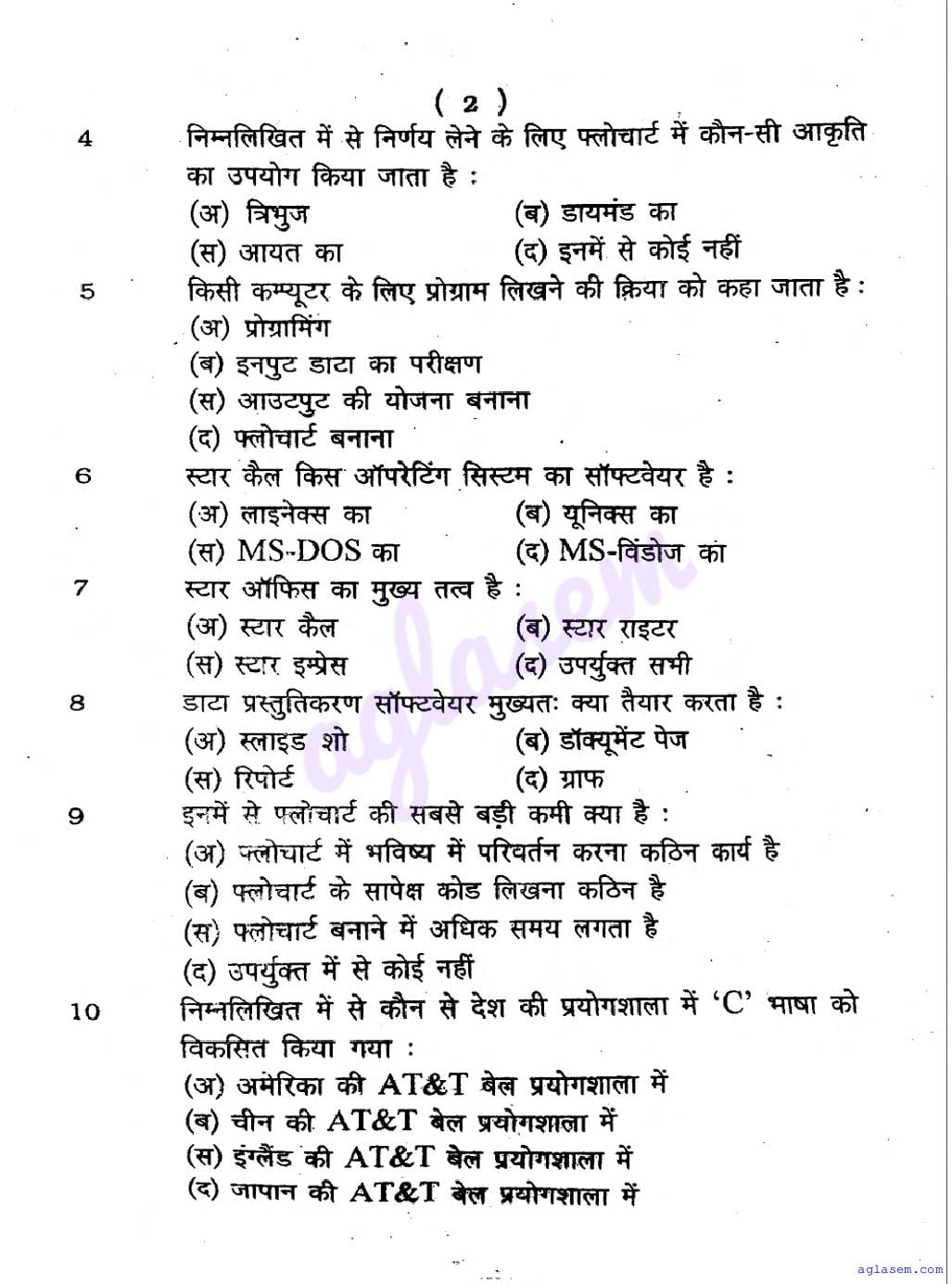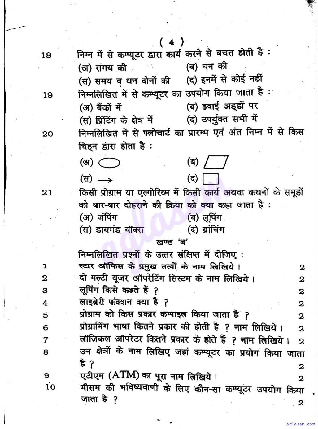 UP Board Class 9 Computer Question Paper 2026 is published after exam. You can download the UP Board Class 9 Computer Previous Year Question Paper PDF from here on aglasem to practice for your upcoming paper. It contains actual questions asked in the past year Computer exam. This UP Board Class 9 Question Paper is for the Computer subject and helps you understand exam difficulty level, types of questions to expect in exams. Therefore by practising the Computer question paper, you can improve your preparation for the 9th standard exams and aim to score full marks in Computer.