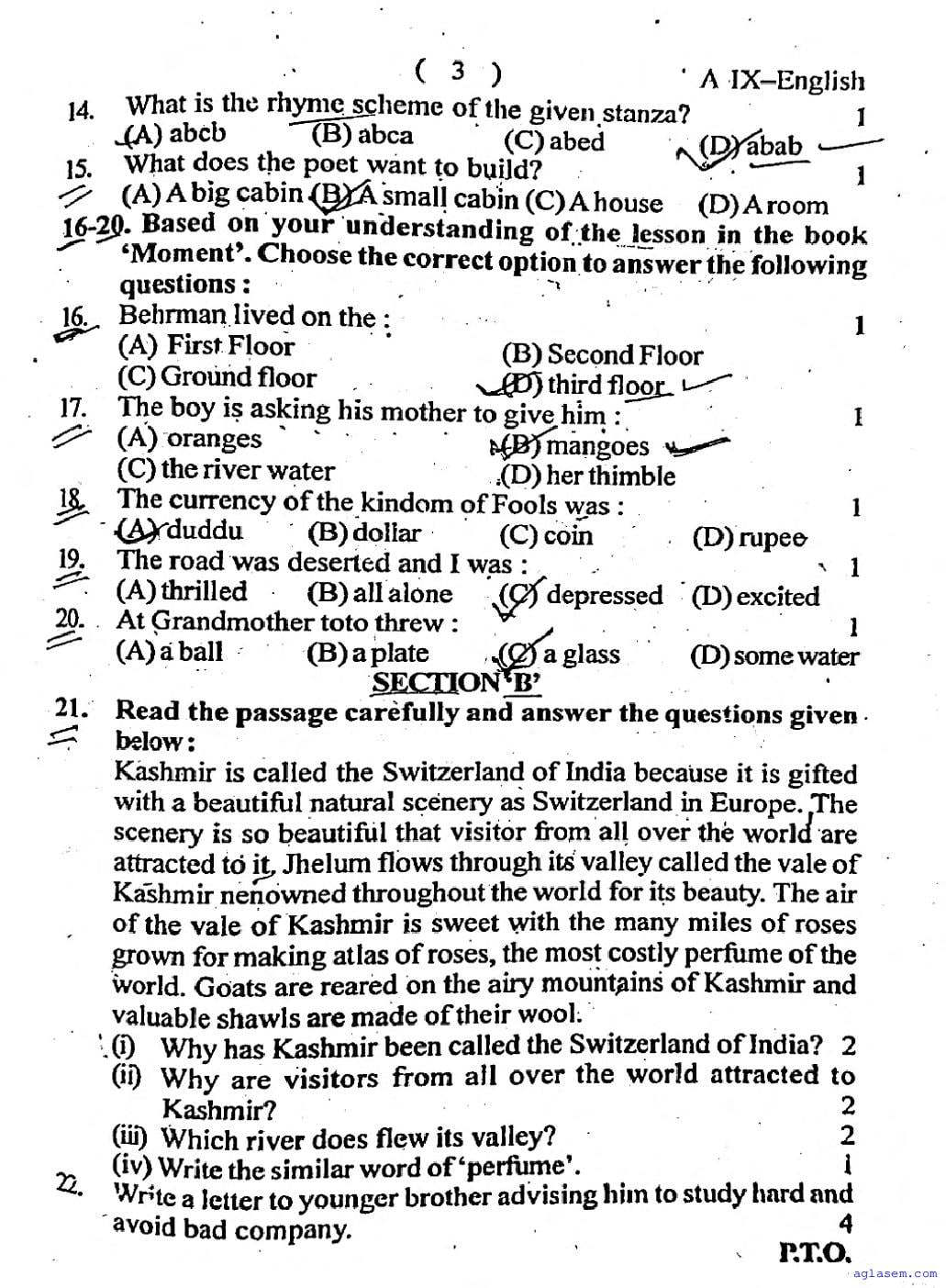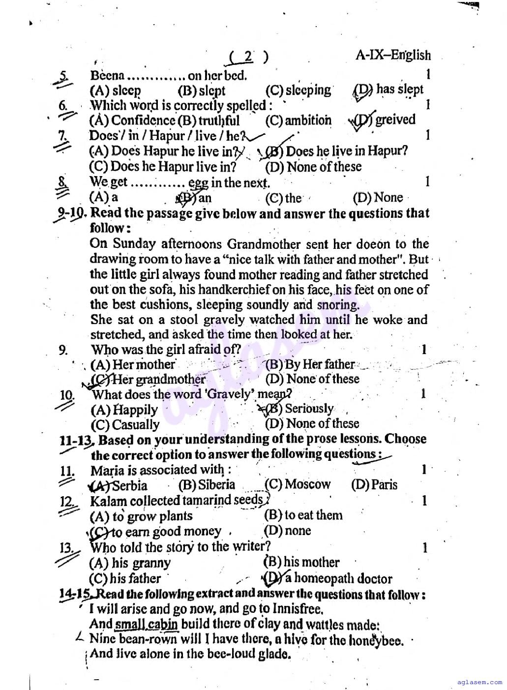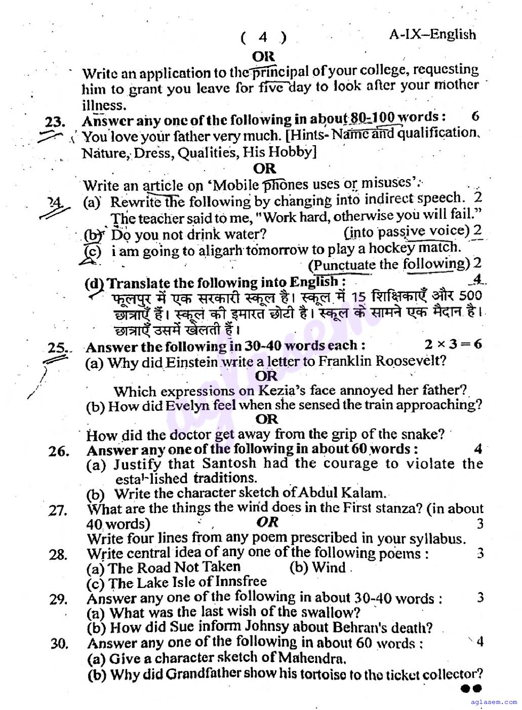 | Study Material Here | UP Board Previous Year Question Paper of Class 9 English |