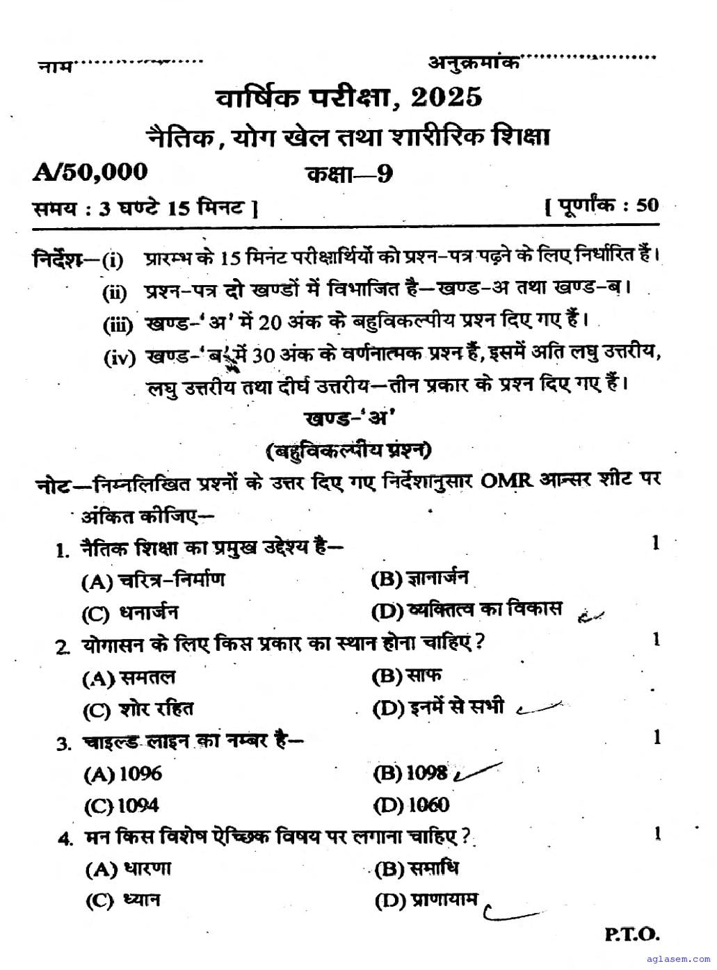 UP Board Class 9 Physical Education Question Paper 2026 is published after exam. You can download the UP Board Class 9 Physical Education Previous Year Question Paper PDF from here on aglasem to practice for your upcoming paper. It contains actual questions asked in the past year Physical Education exam. This UP Board Class 9 Question Paper is for the Physical Education subject and helps you understand exam difficulty level, types of questions to expect in exams. Therefore by practising the Physical Education question paper, you can improve your preparation for the 9th standard exams and aim to score full marks in Physical Education.