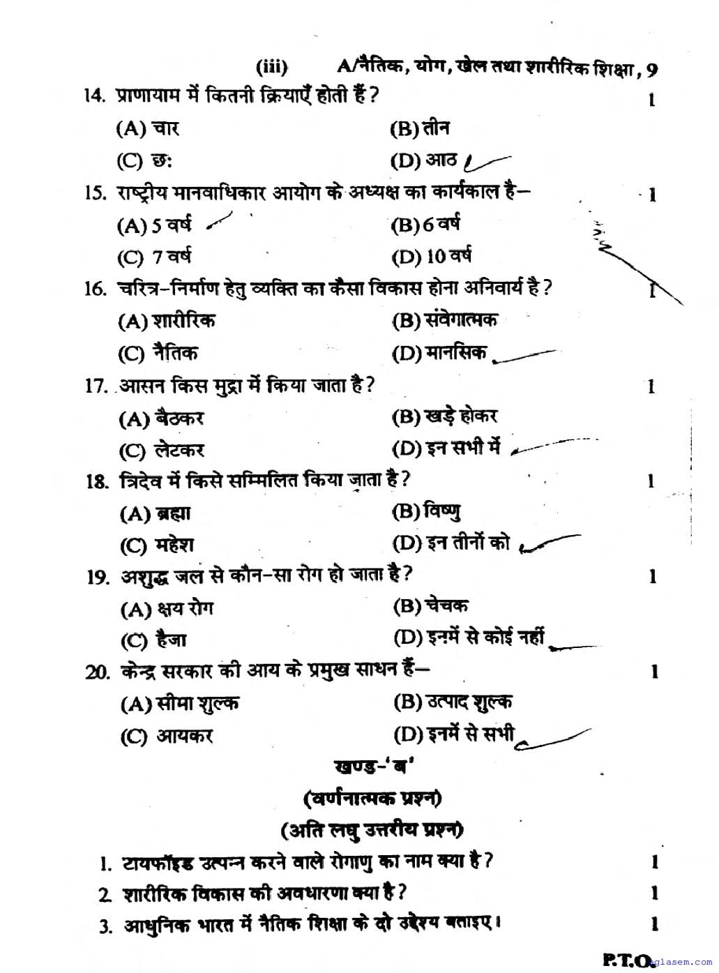 The latest available complete exam paper for Physical Education is as follows.