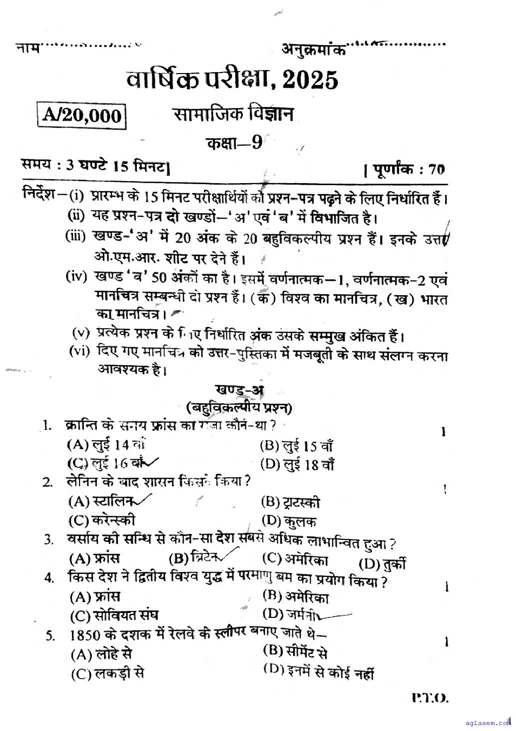 UP Board Class 9 Social Studies Question Paper 2025 PDF – Click Here to Download Question Paper PDF