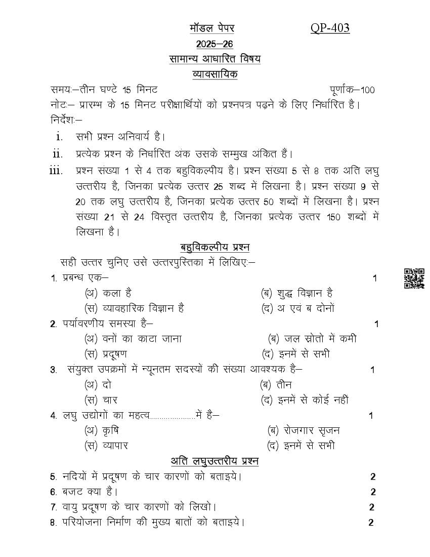 - UP Board Class 12 Model Paper