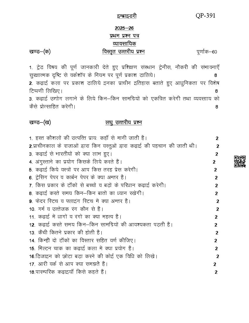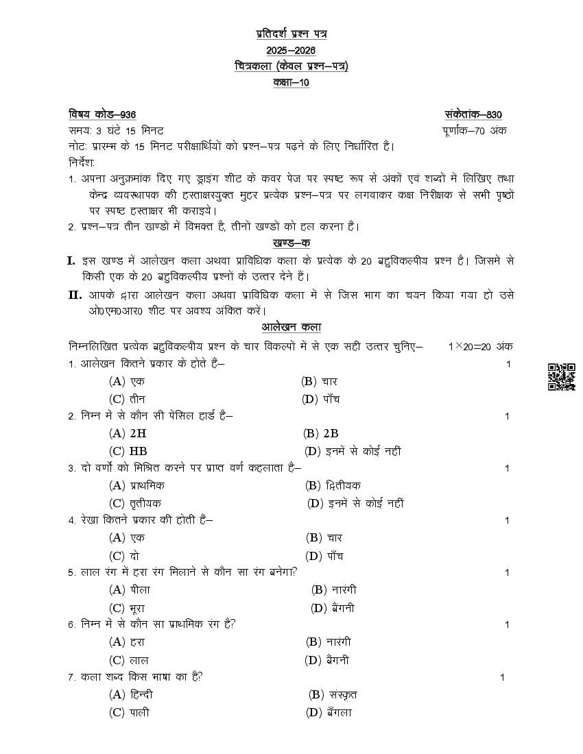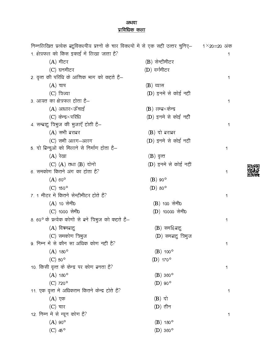 You can download 2026 SQP when released by UPMSP at official website. Last released sample paper is as follows
