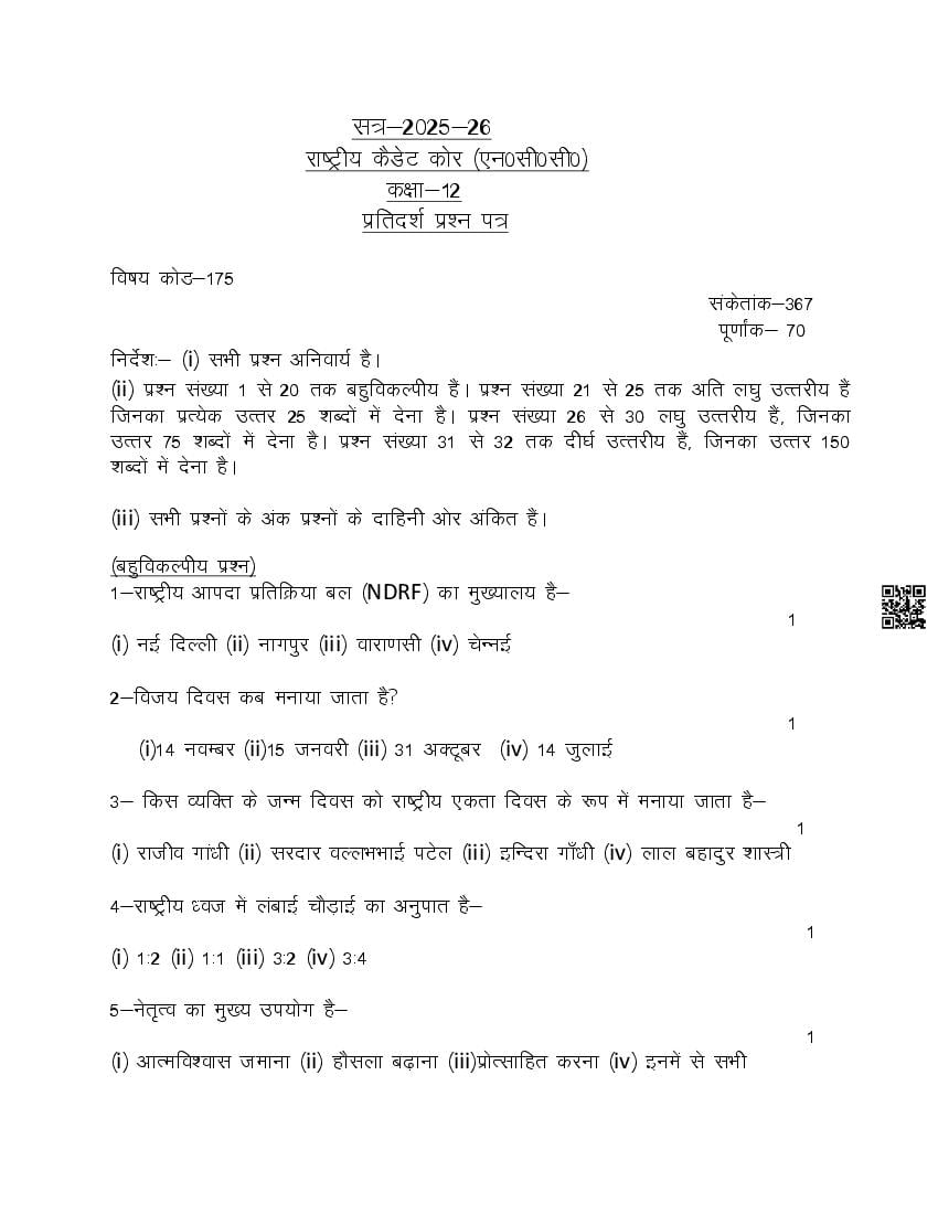 - After that, it is important to solve UP Board Class 12 NCC Model Paper 2026.