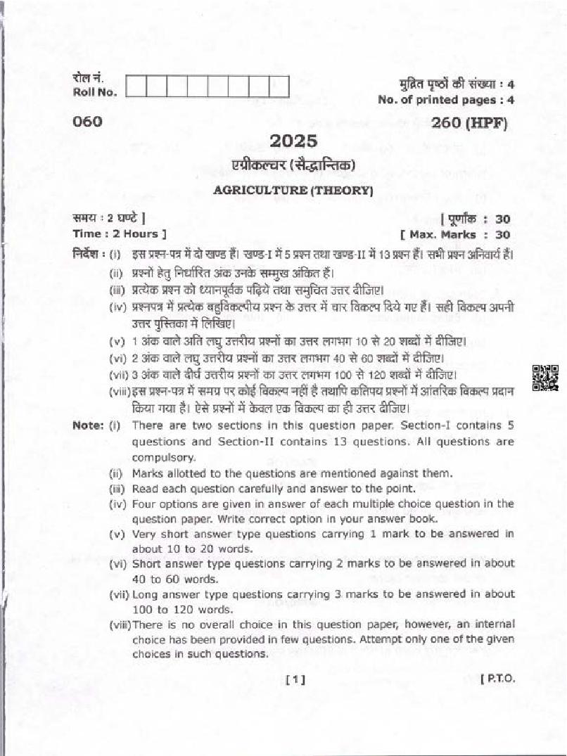 The Uttarakhand Board question paper of class 10 for Agriculture is as follows.