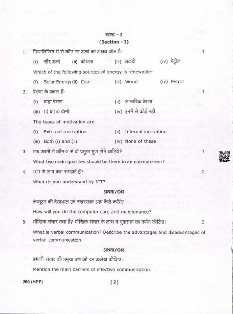 • Uttarakhand Board Question Paper Class 11
