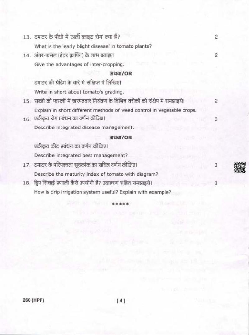 The complete class 10 Agriculture question paper is as follows.