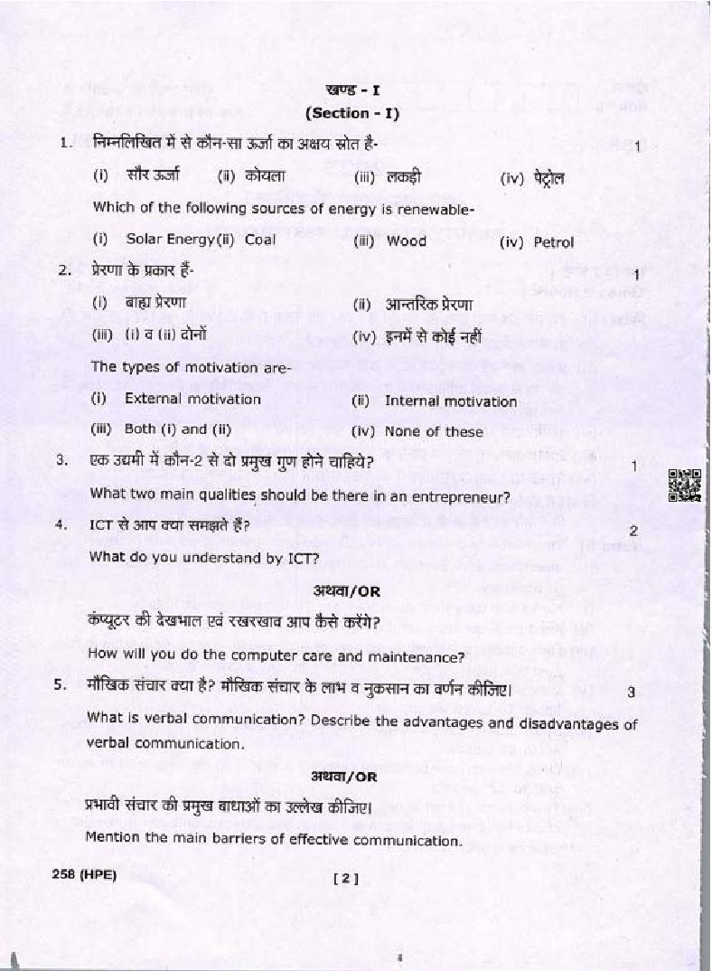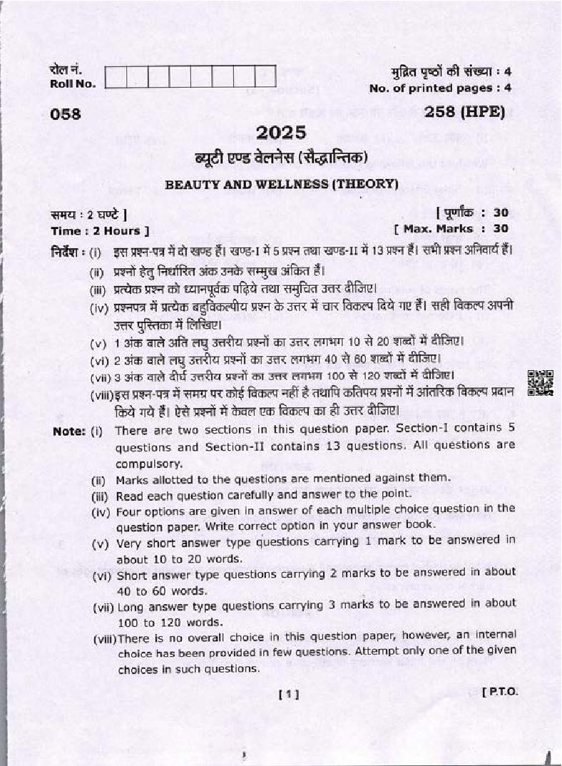 The Uttarakhand Board question paper of class 10 for Beauty and Wellness is as follows.