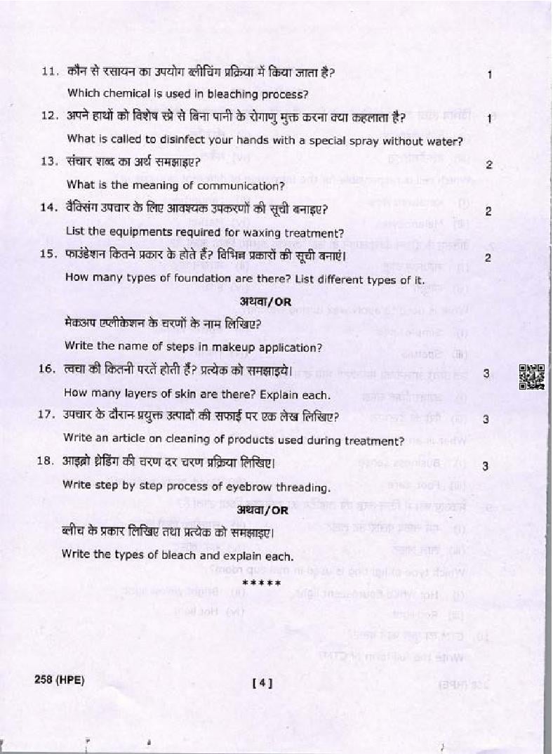 The complete class 10 Beauty and Wellness question paper is as follows.