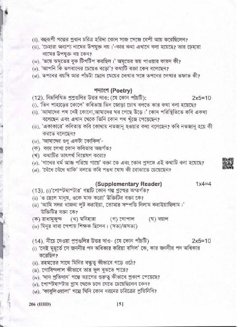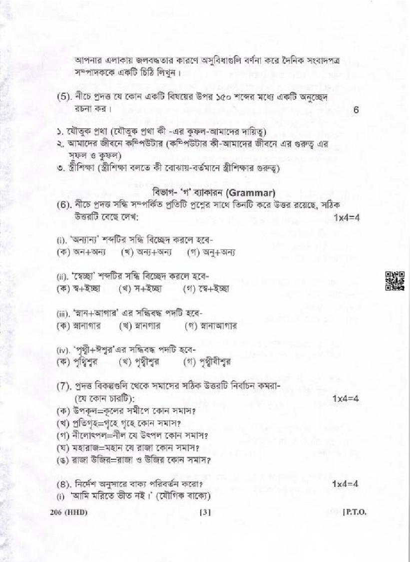 The Uttarakhand Board question paper of class 10 for Bengali is as follows.