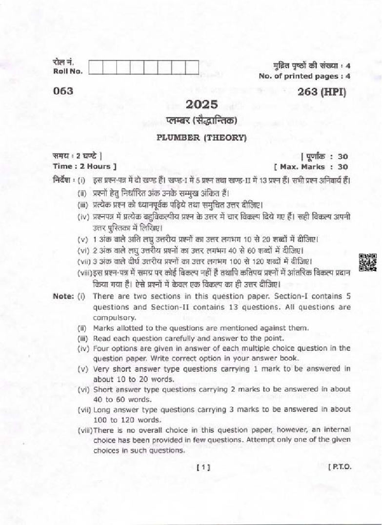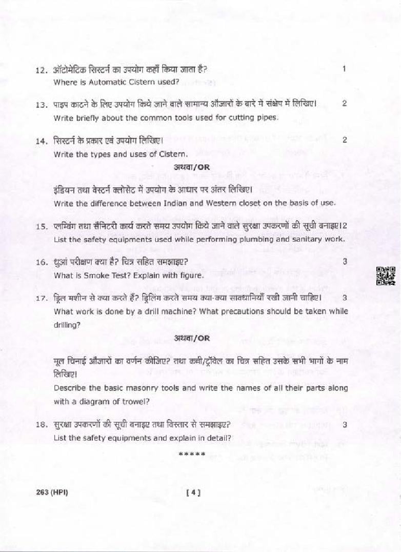 Uttarakhand Board Class 10 Plumber Question Paper 2025 PDF