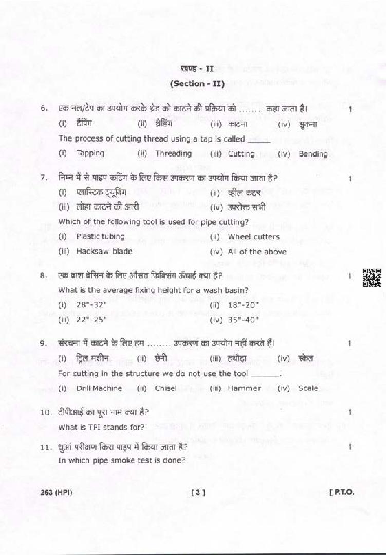 Uttarakhand Board Class 10 Plumber Question Paper 2025