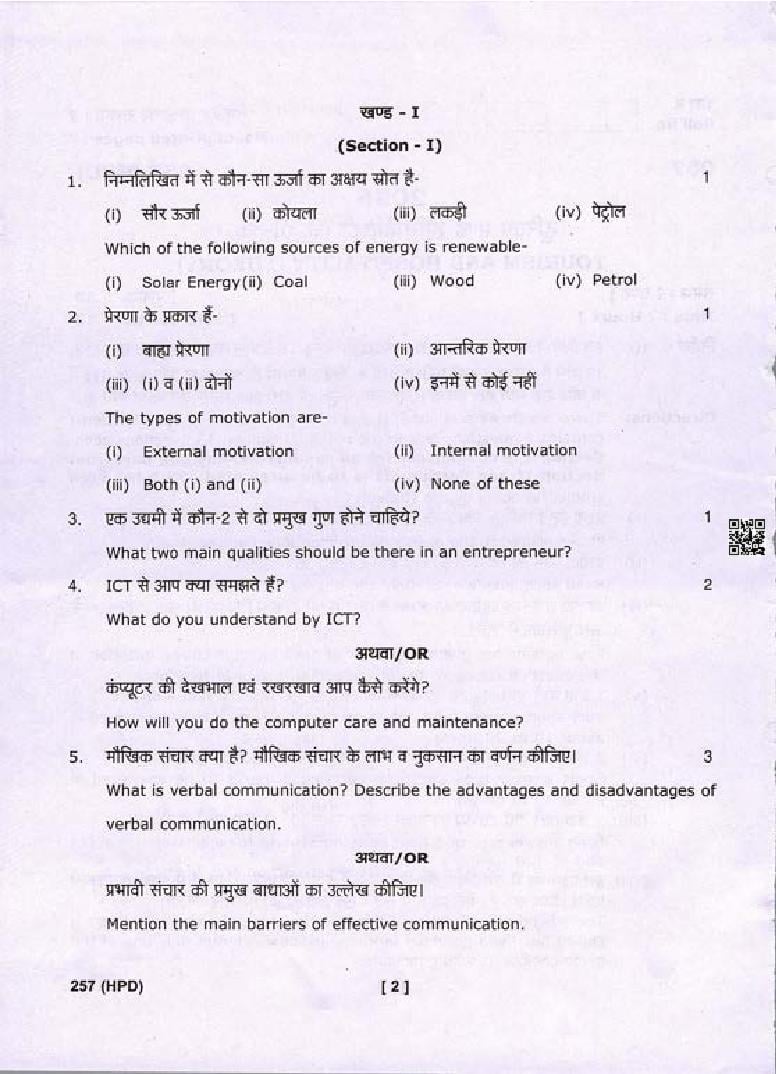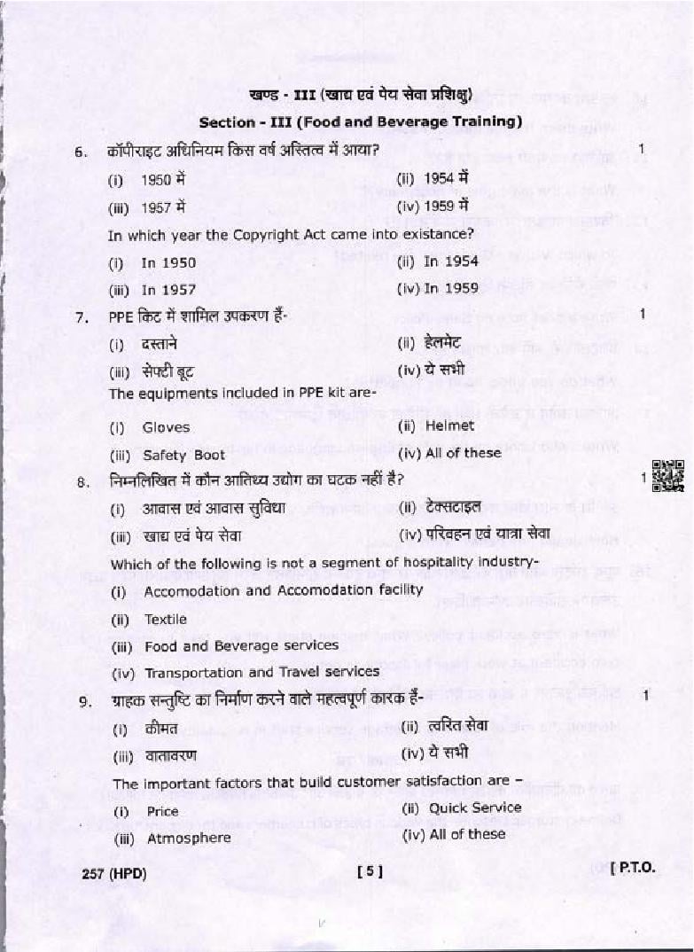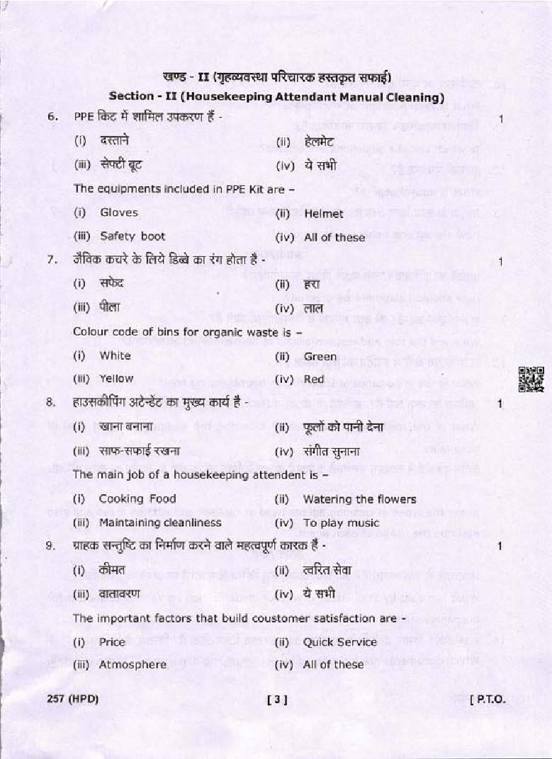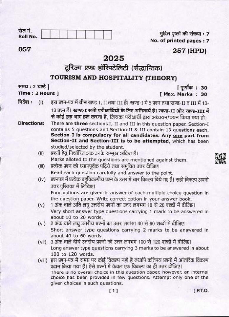 The Uttarakhand Board question paper of class 10 for Tourism and Hospitality is as follows.