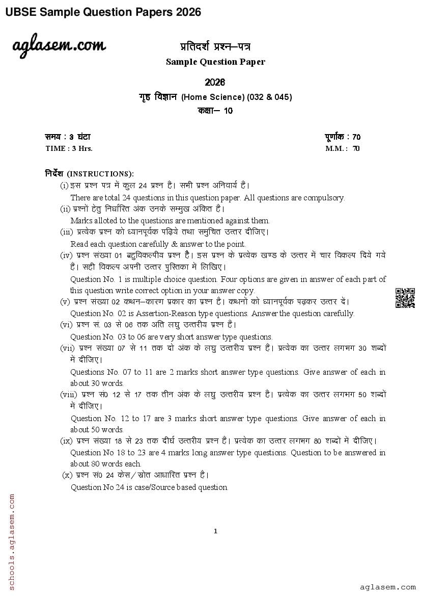Uttarakhand Board Class 10th Home Science Sample Paper 2026 has been released by UBSE. Therefore you can now download the UK Board 10th Model Paper for Home Science PDF from here on aglasem. This UK Board class 10 model paper contains sample questions for Home Science based on the latest syllabus. Moreover the class 10 sample paper has Home Science questions in the same pattern as you will get in UK Board 10th Home Science exam that will be held by Uttarakhand Board of School Education. Therefore solving this Home Science model question paper increases your chances of getting 100% in UK Board exam.