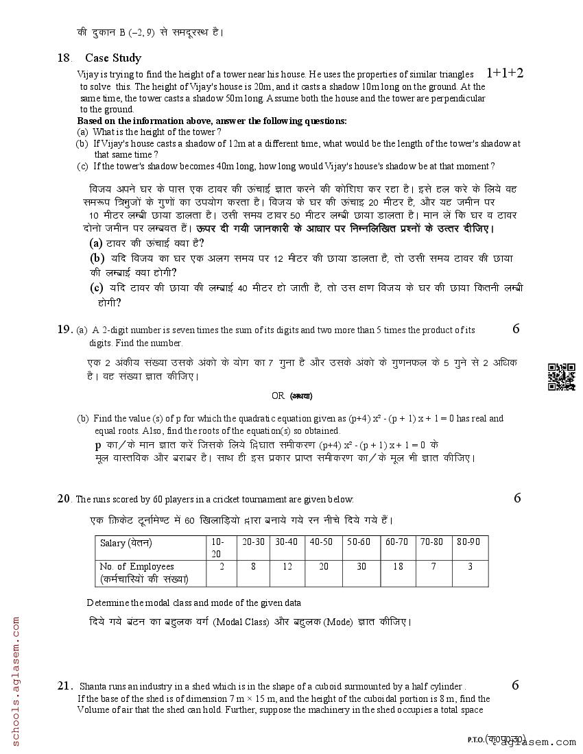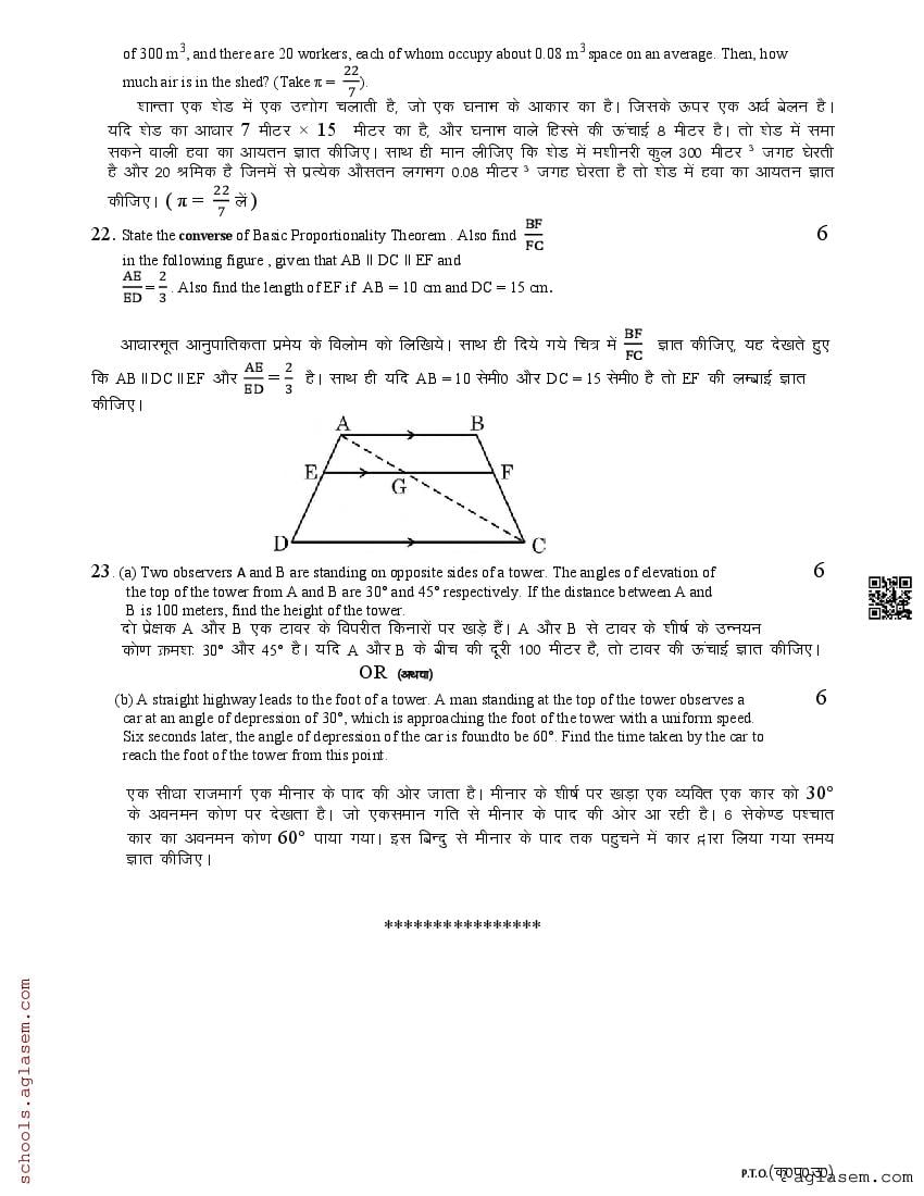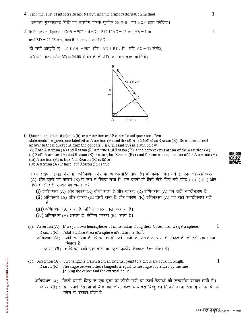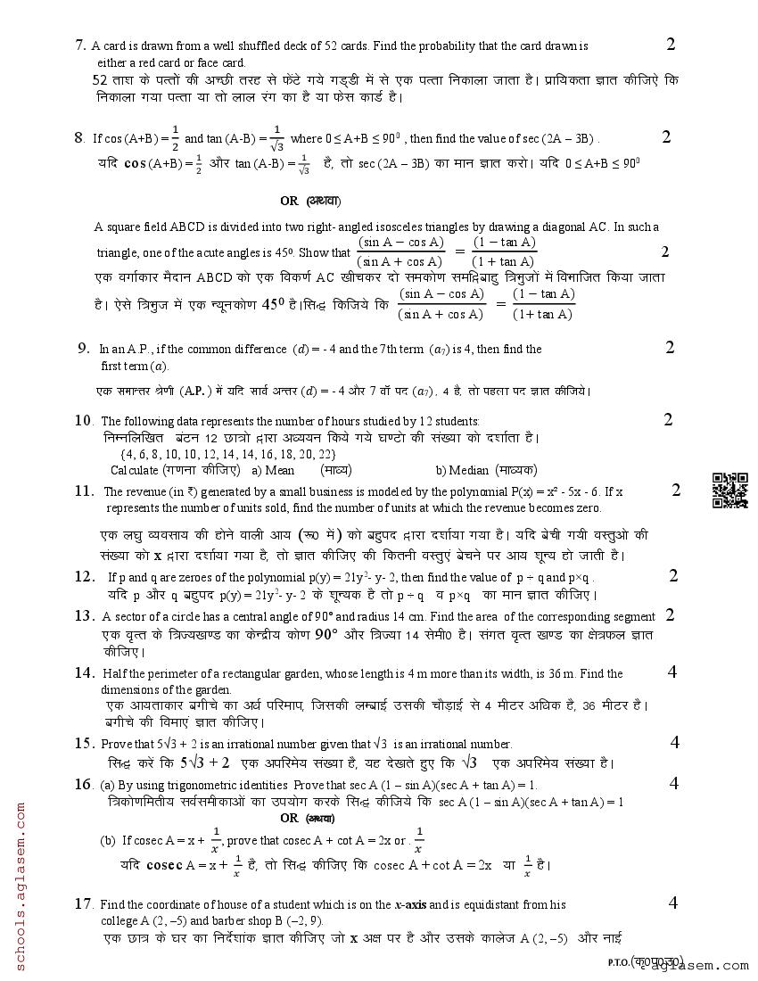 The UK Board Class 10 Sample Paper for Maths is as follows. Uttarakhand Board of School Education (UBSE) has published this with other UK board sample papers.