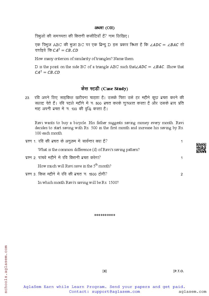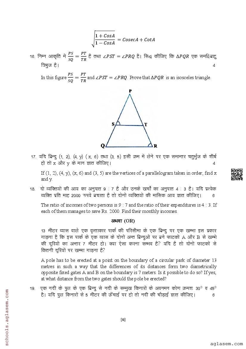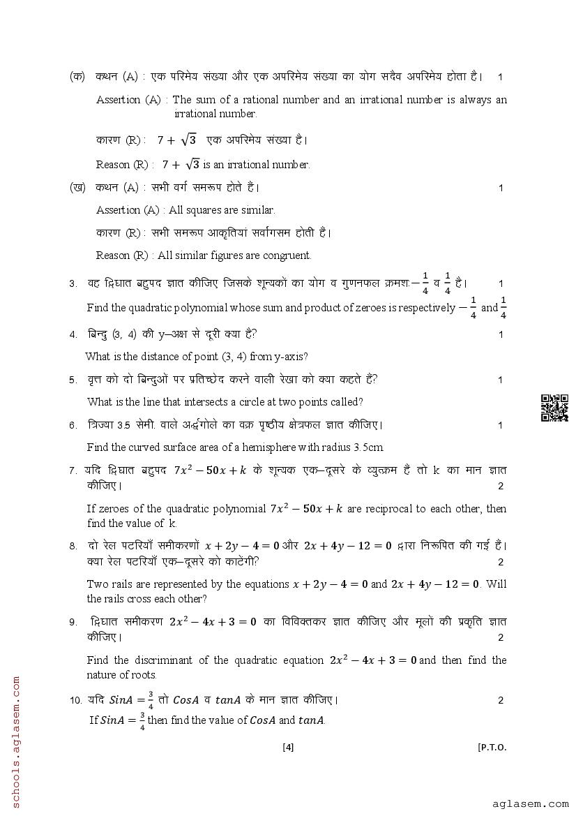 The UK Board Class 10 Sample Paper for Maths is as follows. Uttarakhand Board of School Education (UBSE) has published this with other UK board sample papers.