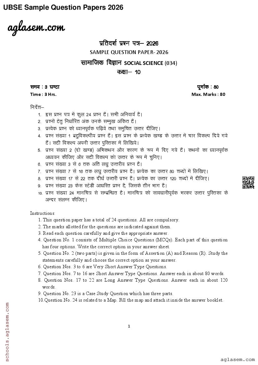 Uttarakhand Board Class 10th Social Science Sample Paper 2026 has been released by UBSE. Therefore you can now download the UK Board 10th Model Paper for Social Science PDF from here on aglasem. This UK Board class 10 model paper contains sample questions for Social Science based on the latest syllabus. Moreover the class 10 sample paper has Social Science questions in the same pattern as you will get in UK Board 10th Social Science exam that will be held by Uttarakhand Board of School Education. Therefore solving this Social Science model question paper increases your chances of getting 100% in UK Board exam.