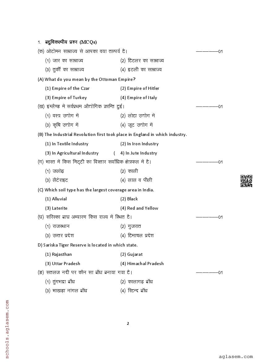 The UK Board Class 10 Sample Paper for Social Science is as follows. Uttarakhand Board of School Education (UBSE) has published this with other UK board sample papers.