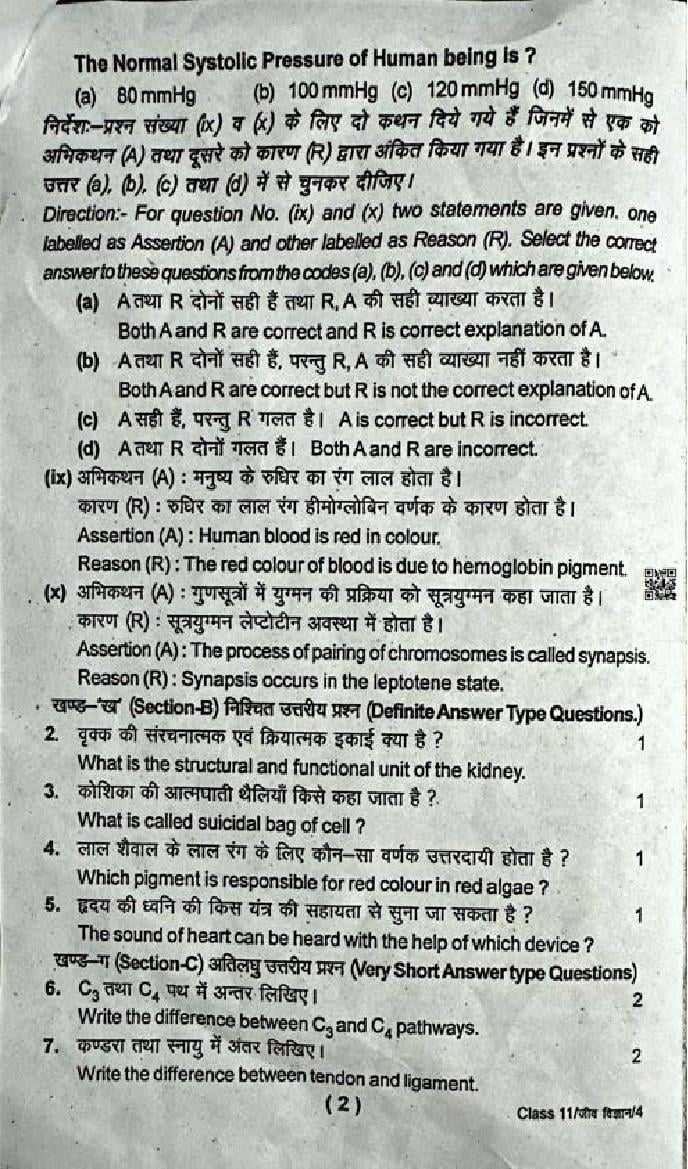 - Uttarakhand Board Question Paper Class 11