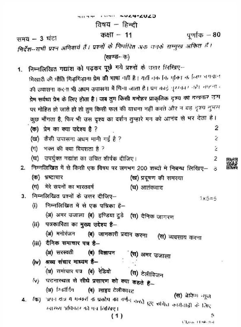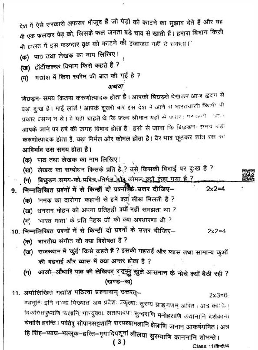 The complete class 11 Hindi question paper is as follows.