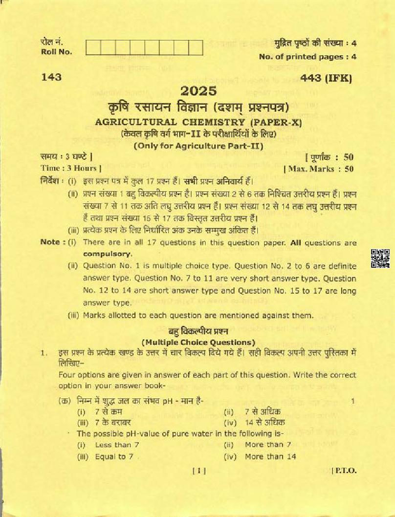 Download the Uttarakhand Board Class 12 Agricultural Chemistry Question Paper 2025 now available after the exam. You can easily access the UK Board (UBSE) 12th Agricultural Chemistry Question Paper PDF here on Aglasem to effectively prepare for your upcoming Agricultural Chemistry tests. These UK Board Class 12 Question Papers for the Agricultural Chemistry subject feature actual questions from previous 12th class exams, allowing you to enhance your preparation. Make the most of your study time and boost your confidence with the Agricultural Chemistry question paper tailored for class 12 exams.