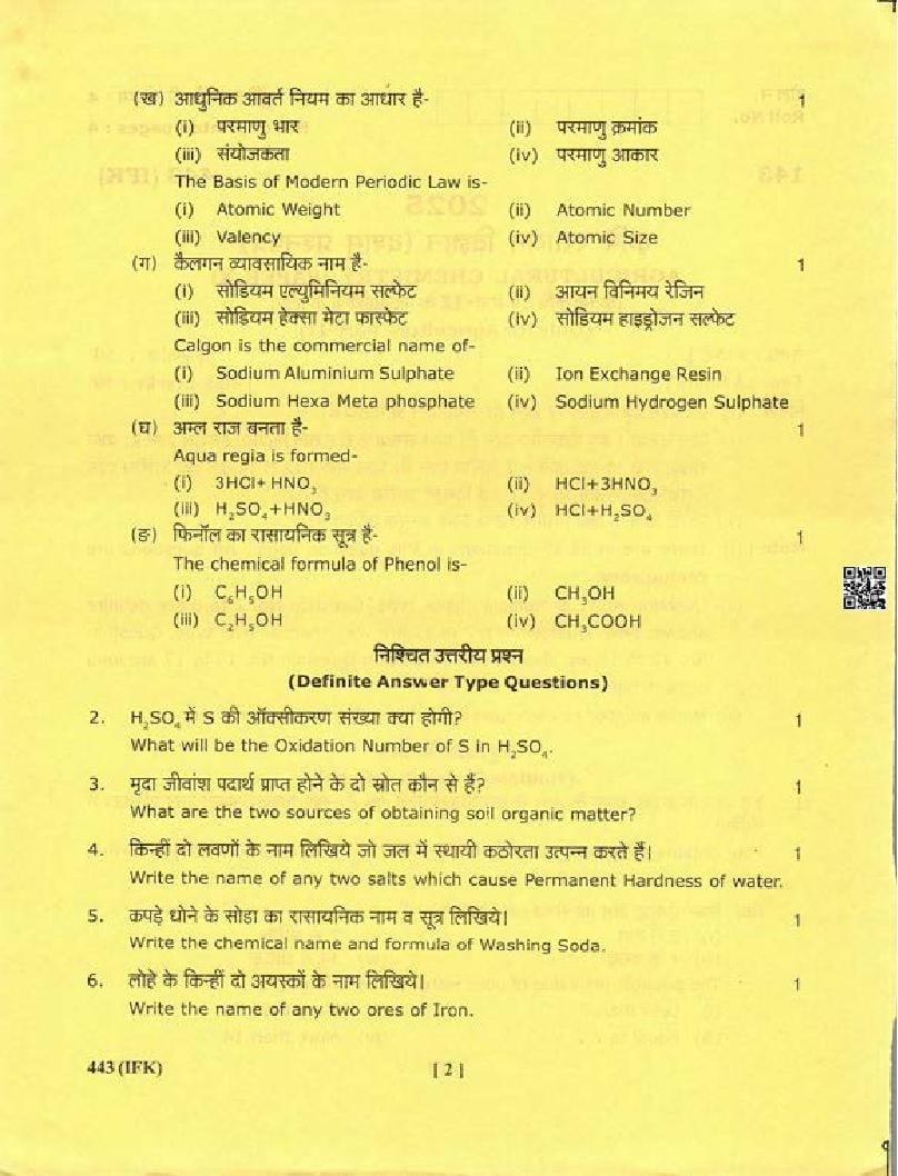 - Uttarakhand Board Question Paper Class 11