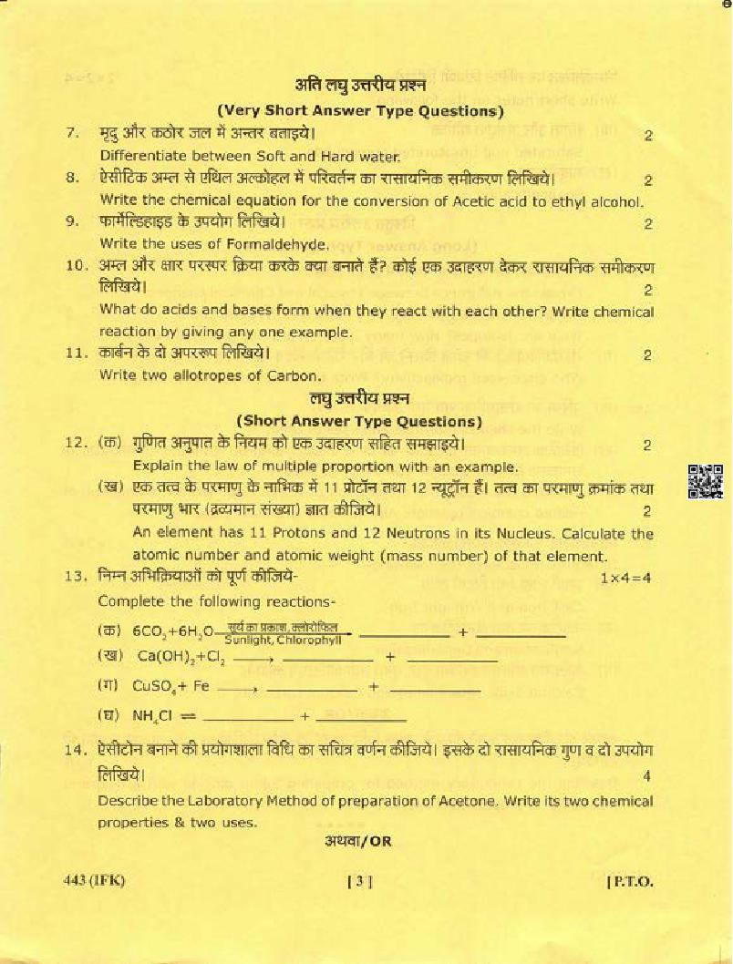 - Uttarakhand Board Question Paper Class 10