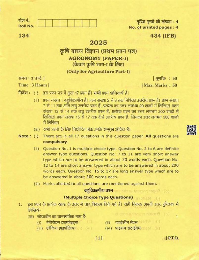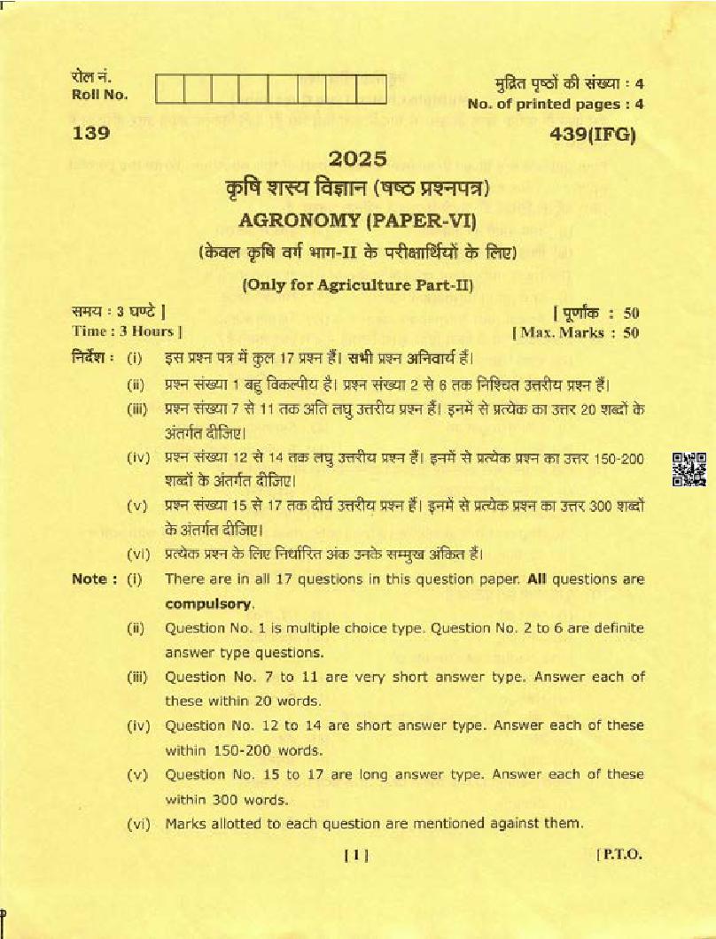 Uttarakhand Board Class 12 Question Paper 2025 For Agronomy View Download