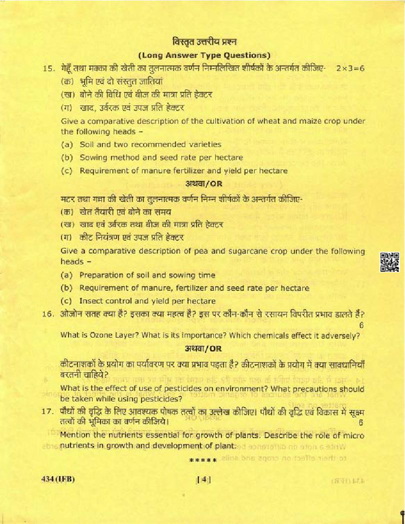 | Study Material Here | Uttarakhand Board Previous Year Question Paper of Class 12 Agronomy |