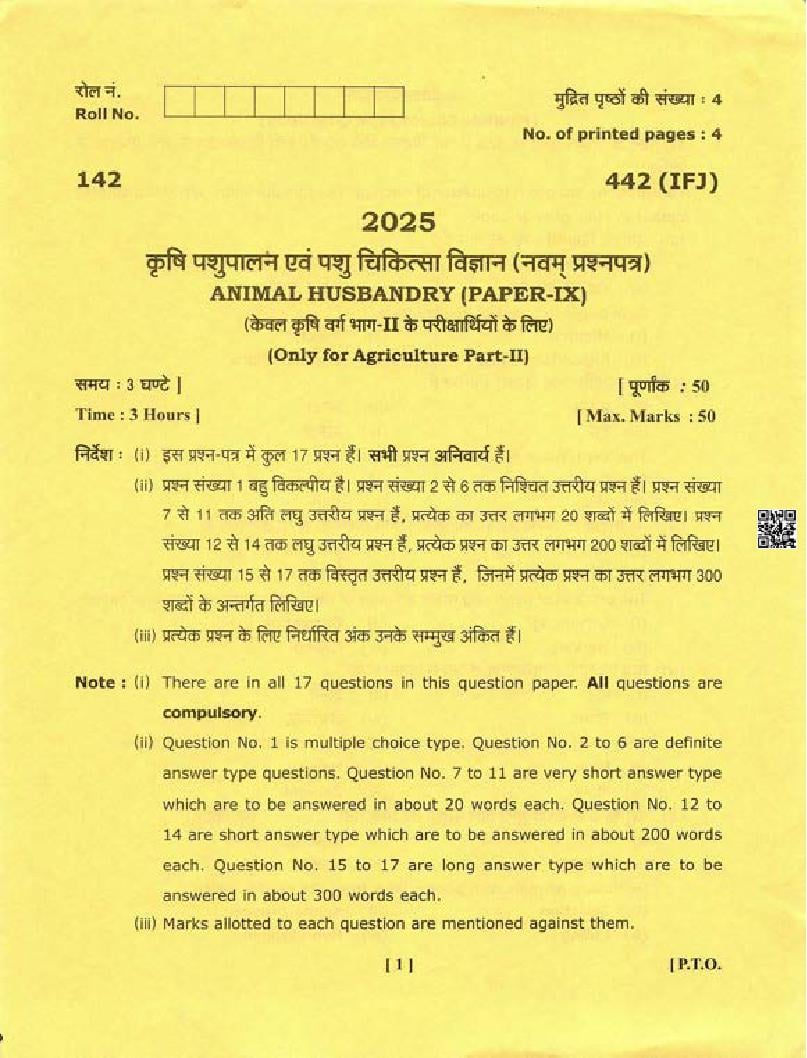 Uttarakhand Board Class 12 Question Paper 2025 For Animal Husbandry View Download