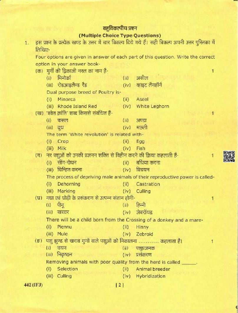 | Study Material Here | Uttarakhand Board Previous Year Question Paper of Class 12 Animal Husbandry |
