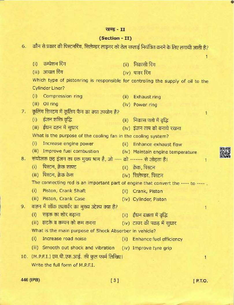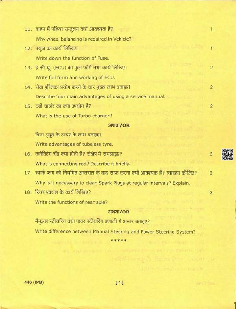 | Study Material Here | Uttarakhand Board Previous Year Question Paper of Class 12 Automotive |