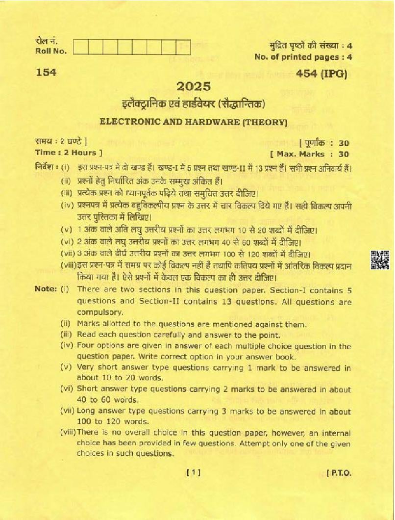 Uttarakhand Board Class 12 Question Paper 2025 For Electronics And Harware View Download