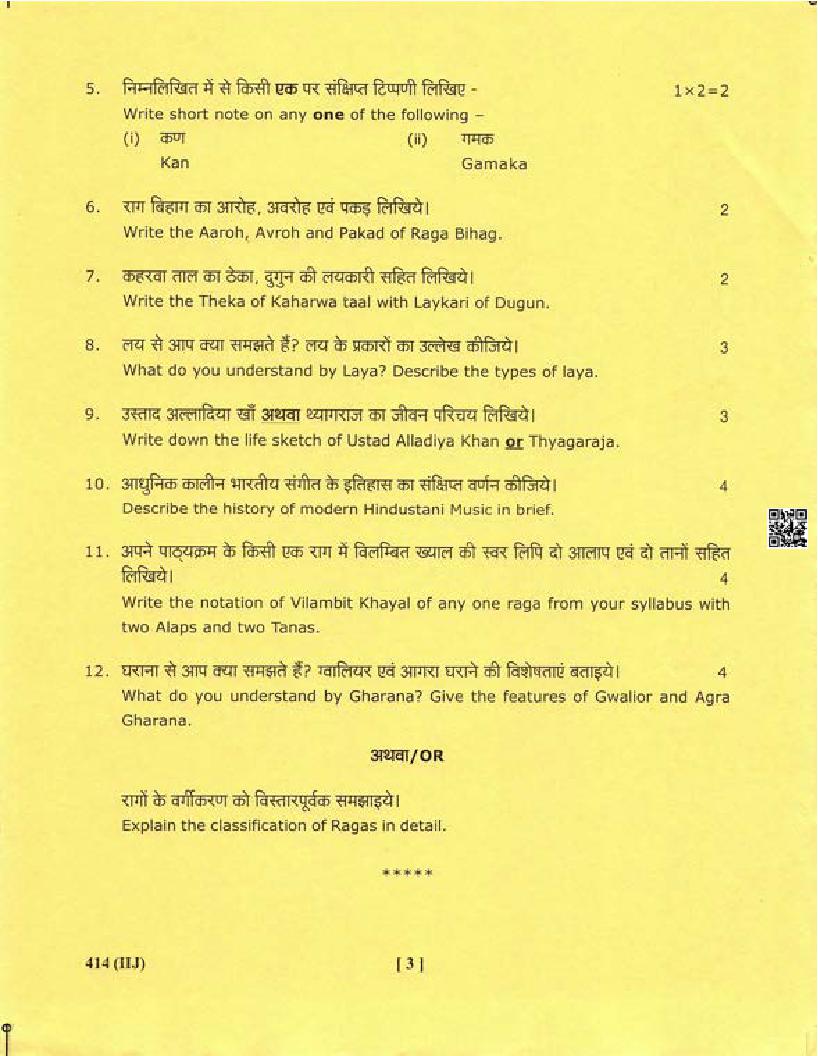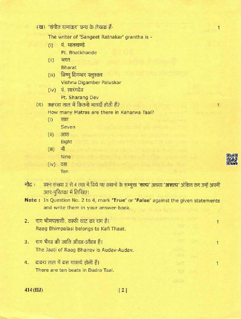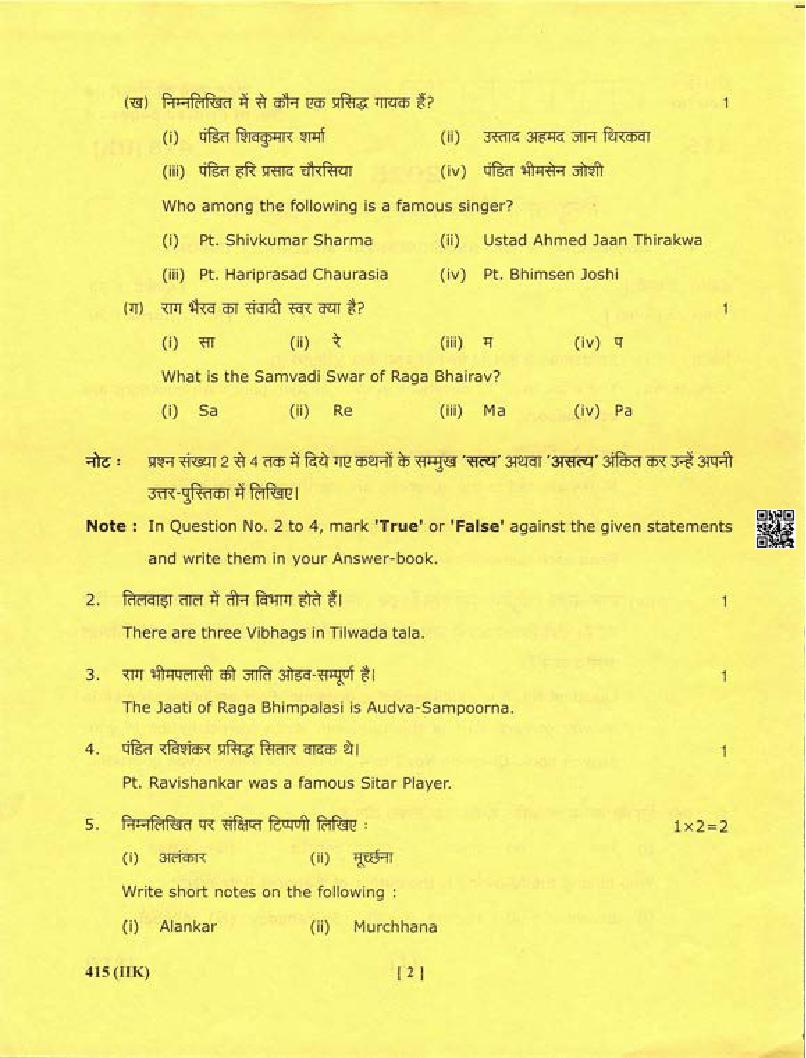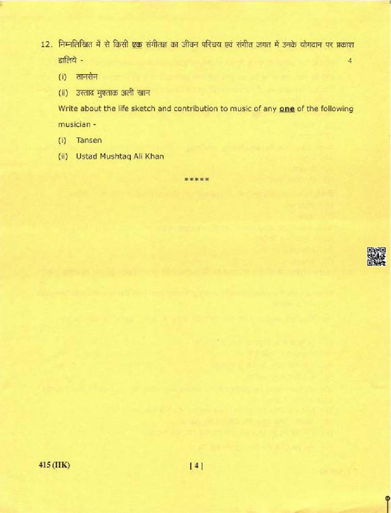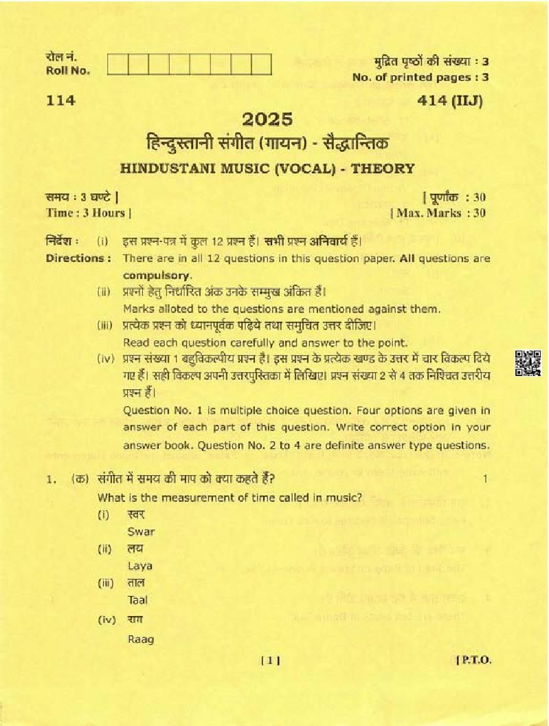 The Uttarakhand Board question paper of class 12 for Hindustani Music is as follows.