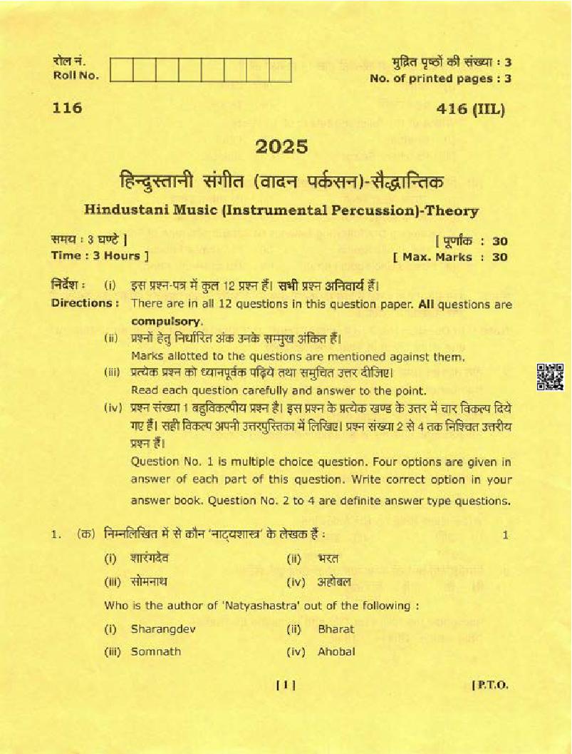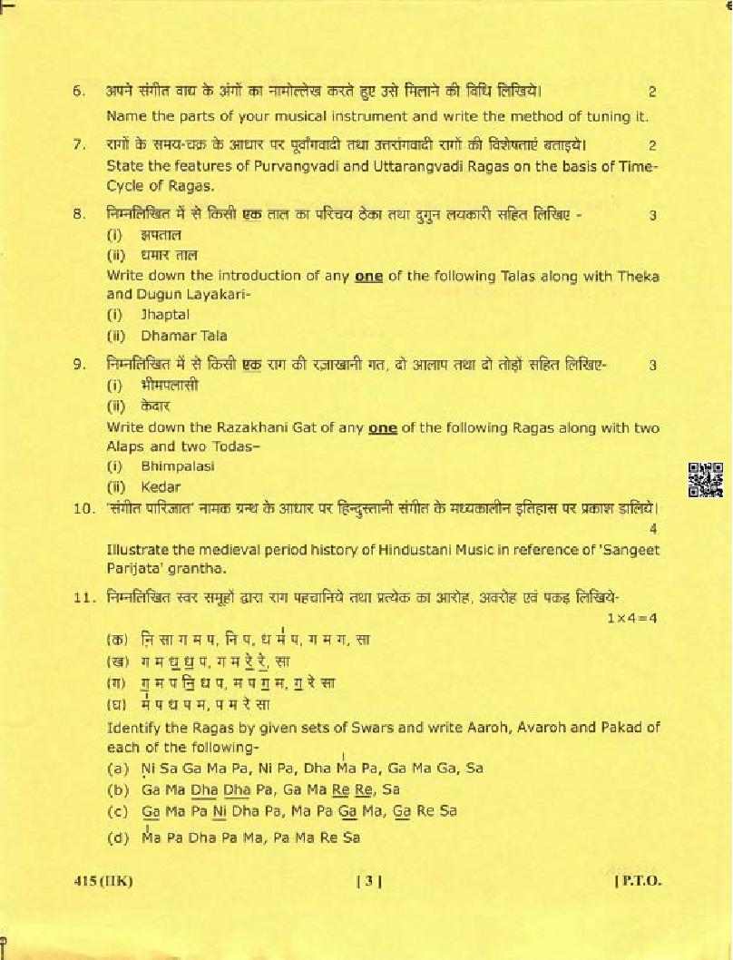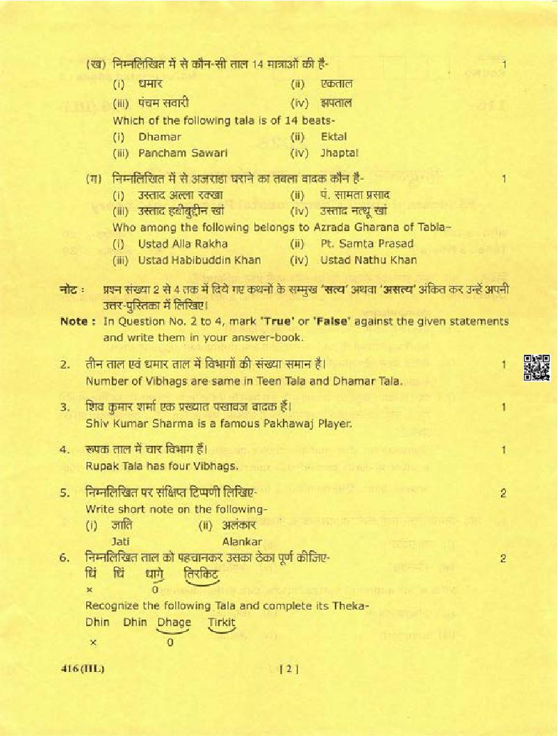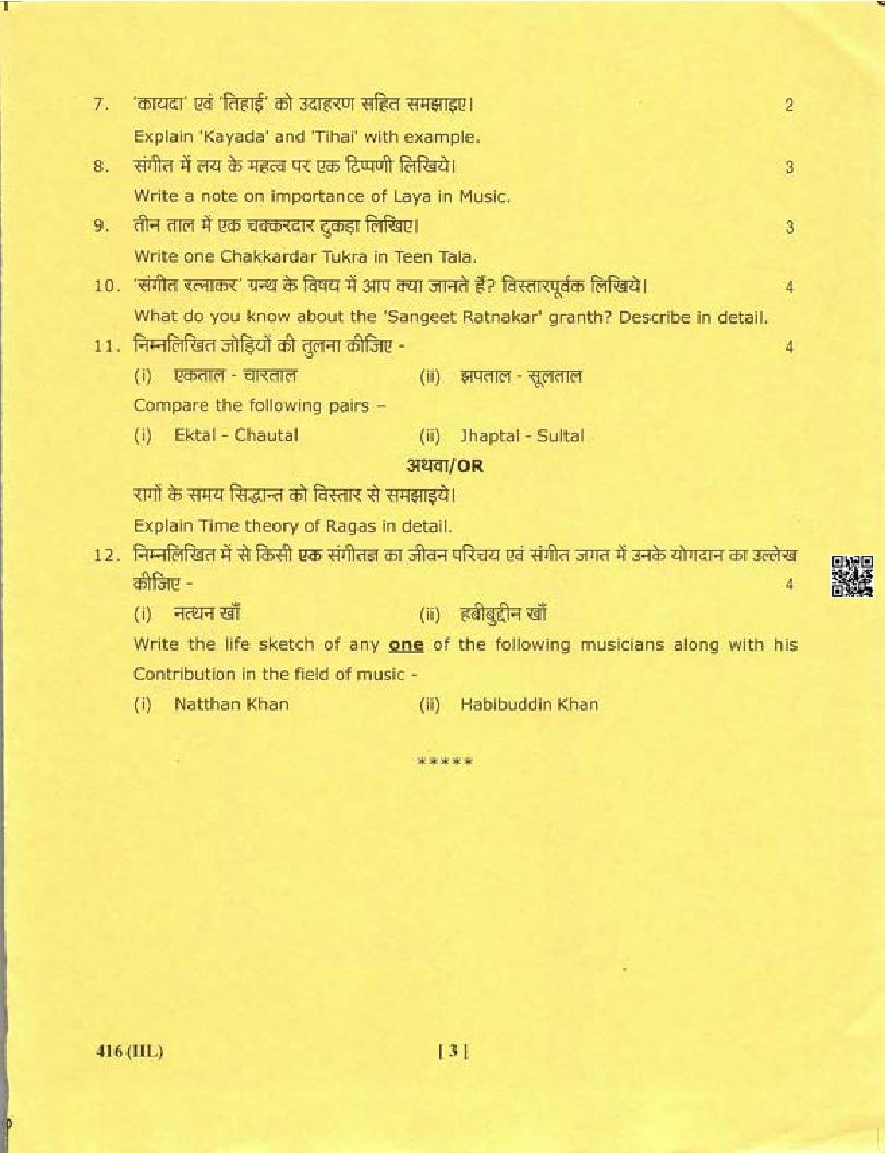 The Uttarakhand Board question paper of class 12 for Hindustani Music is as follows.
