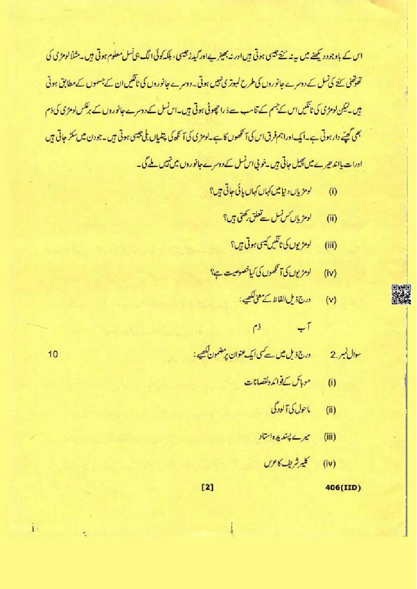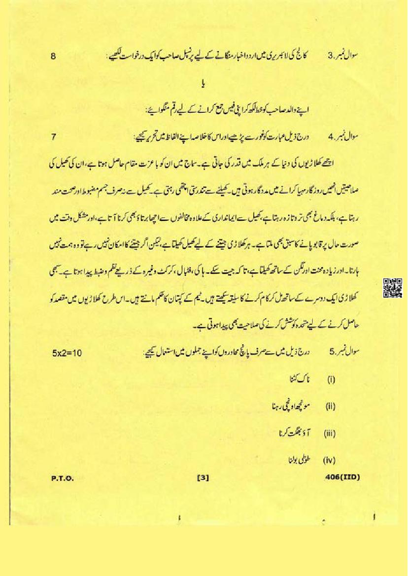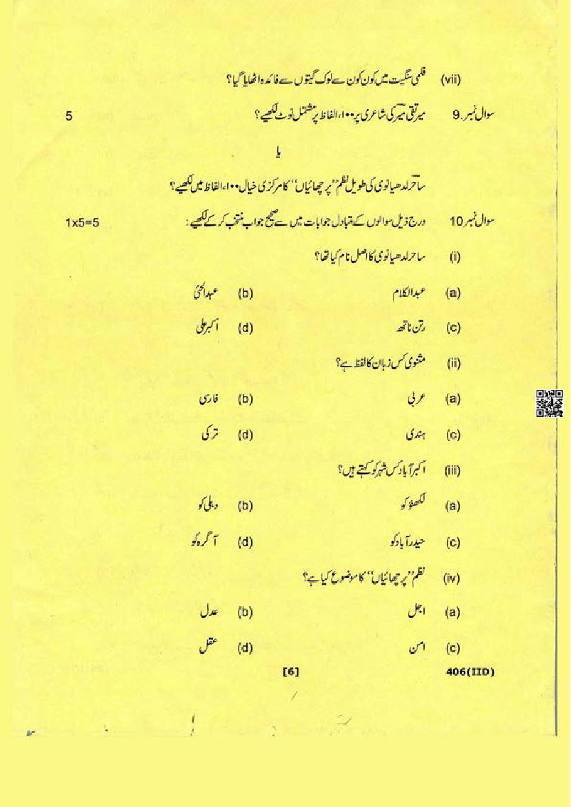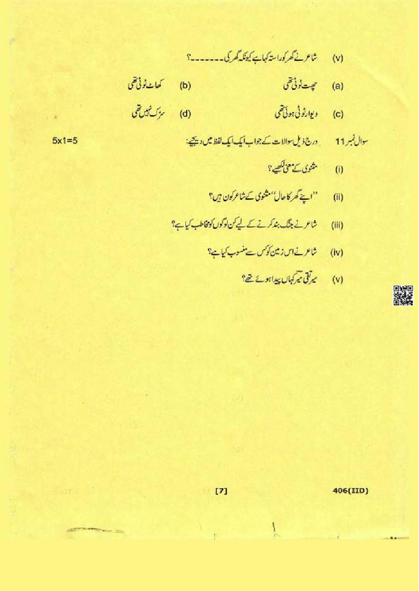The Uttarakhand Board question paper of class 12 for Urdu is as follows.