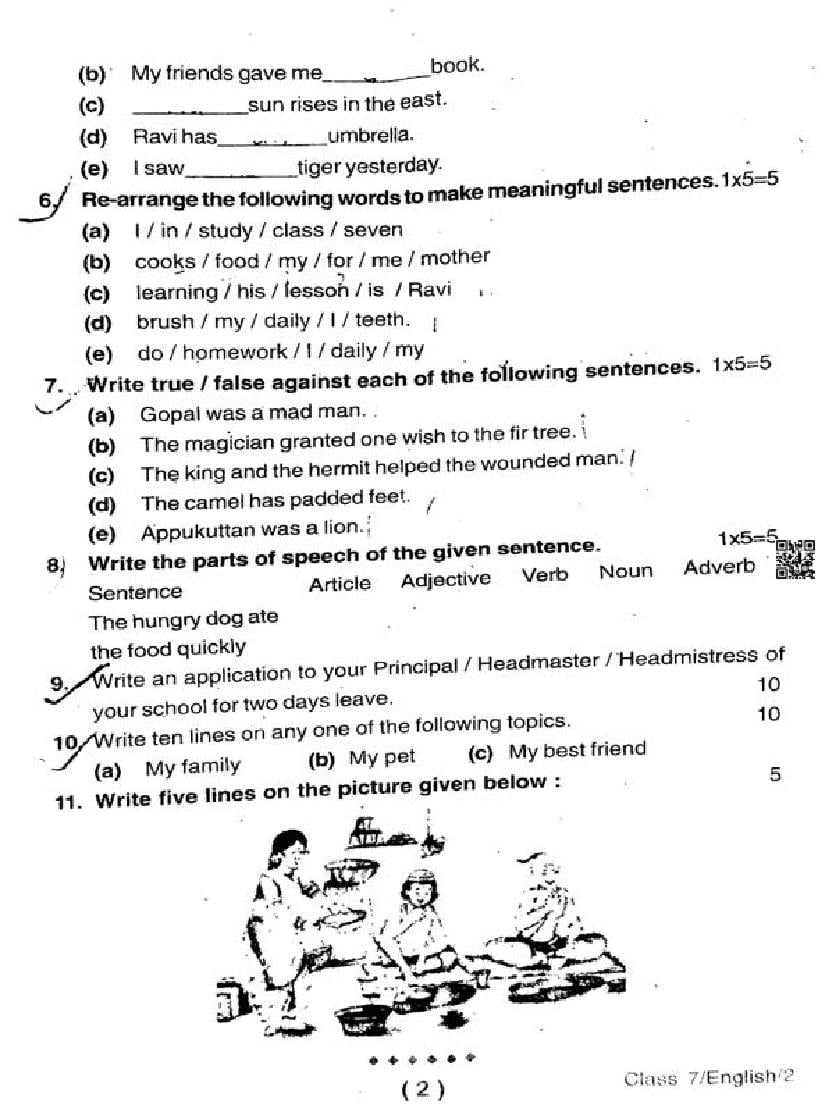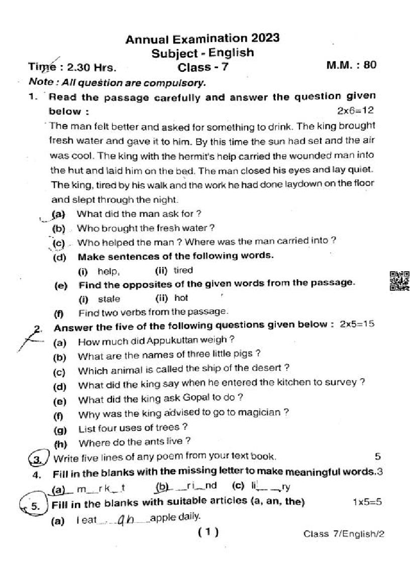 The Uttarakhand Board question paper of class 7 for English is as follows.