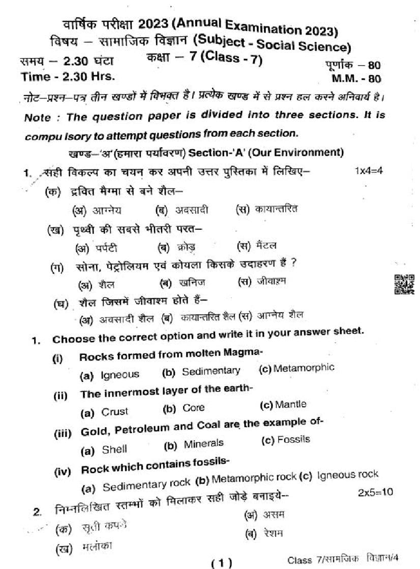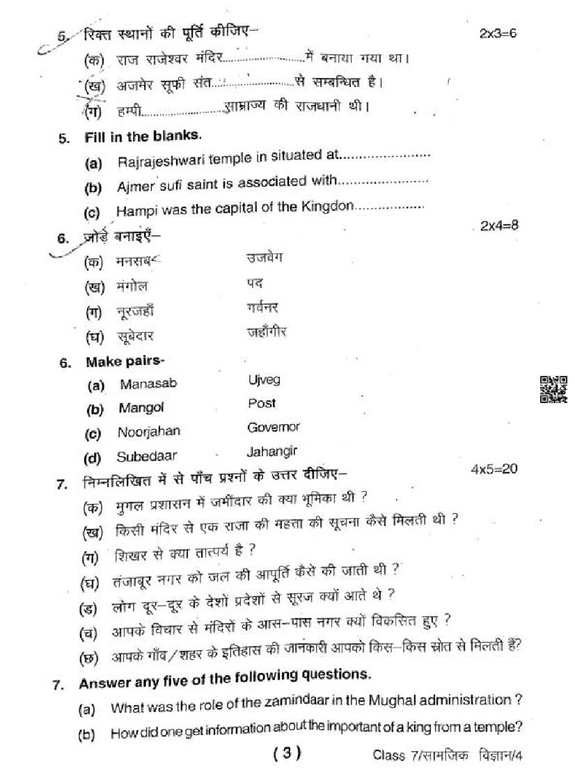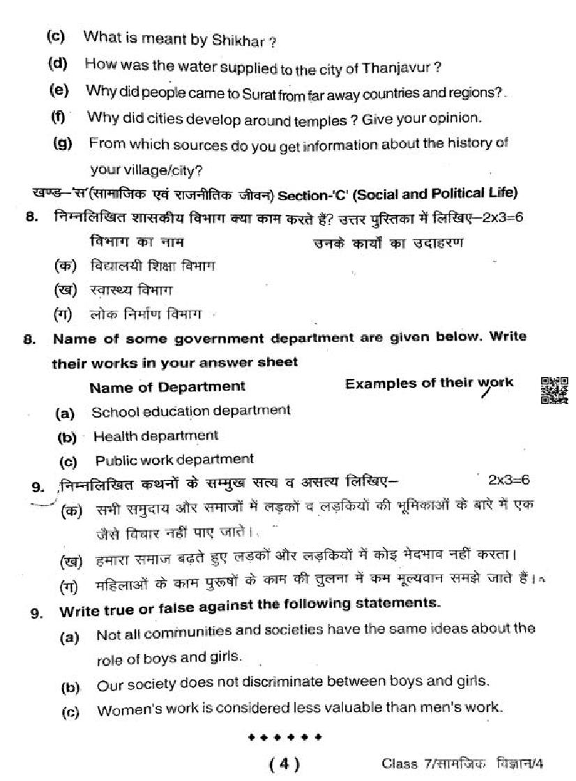 The Uttarakhand Board question paper of class 7 for Social Science is as follows.