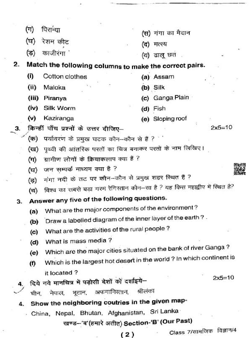 | More PYQP of This Class | Uttarakhand Board Previous Year Question Paper of Class 7 |