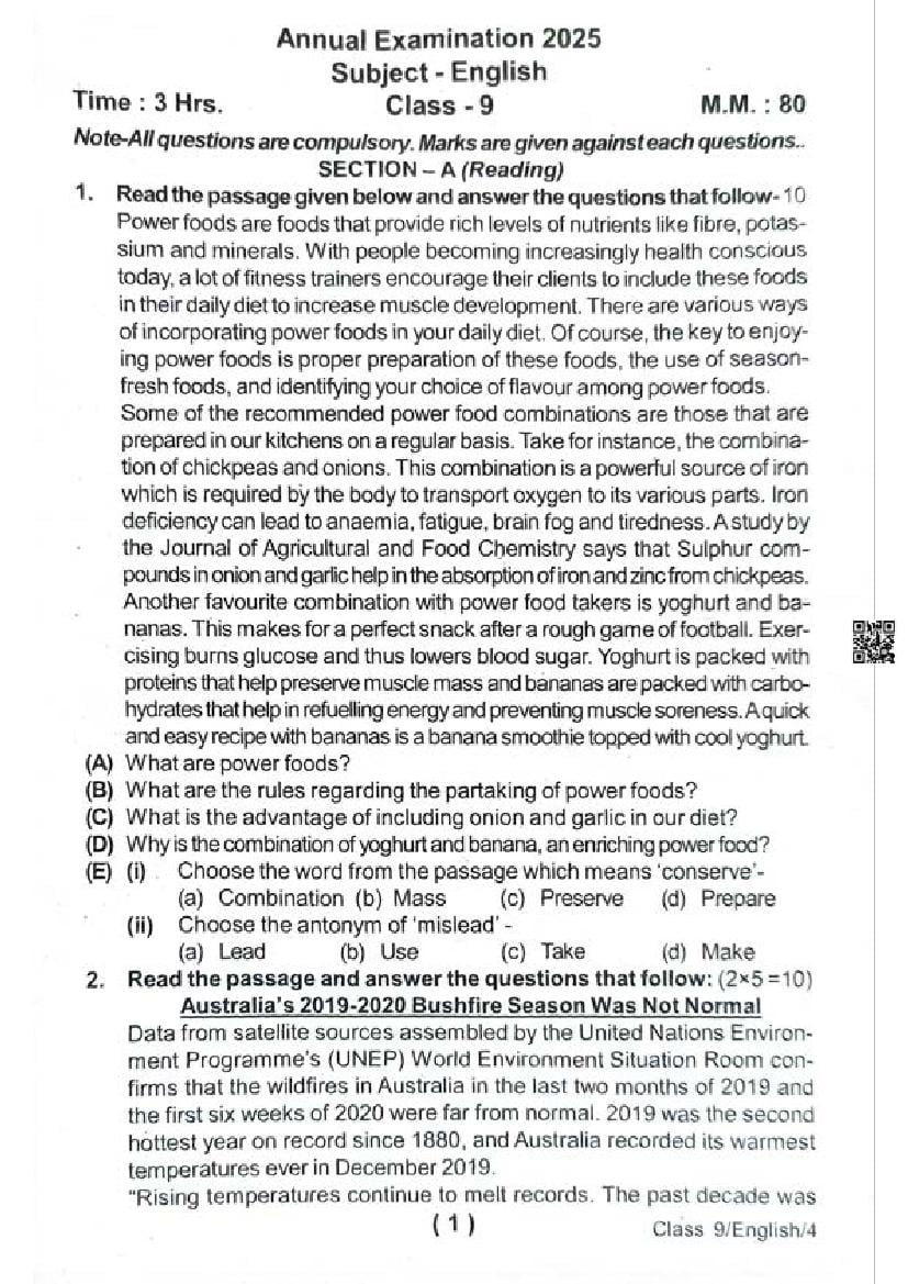 Uttarakhand Board Class 9 Question Paper 2025 English View Download