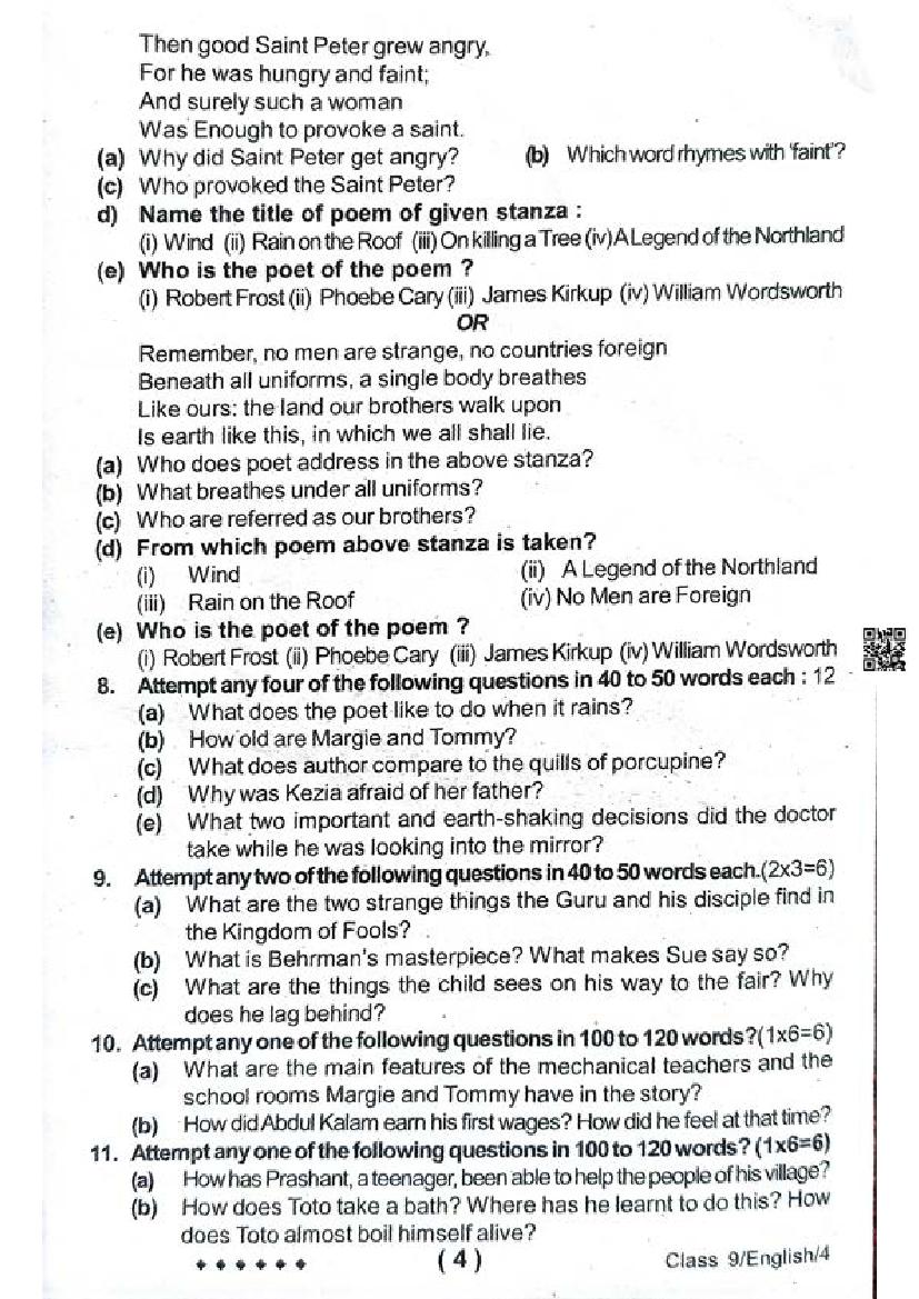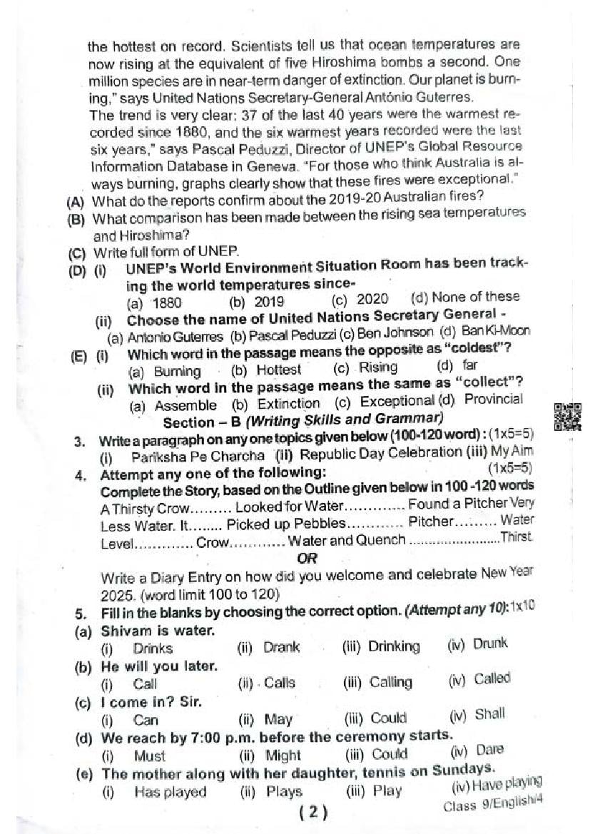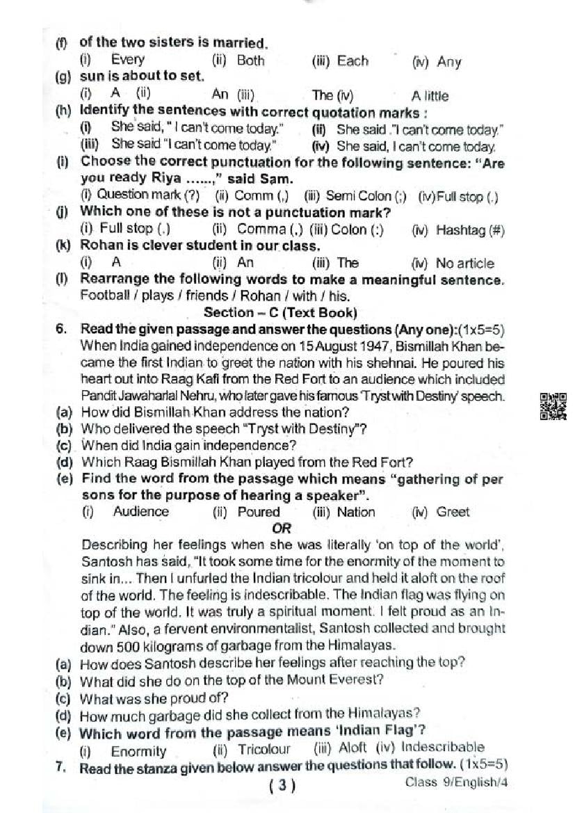 The Uttarakhand Board question paper of class 9 for English is as follows.