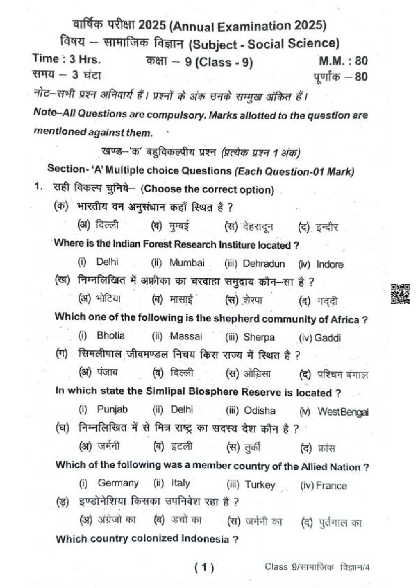 Uttarakhand Board Class 9 Social Science Question Paper 2025