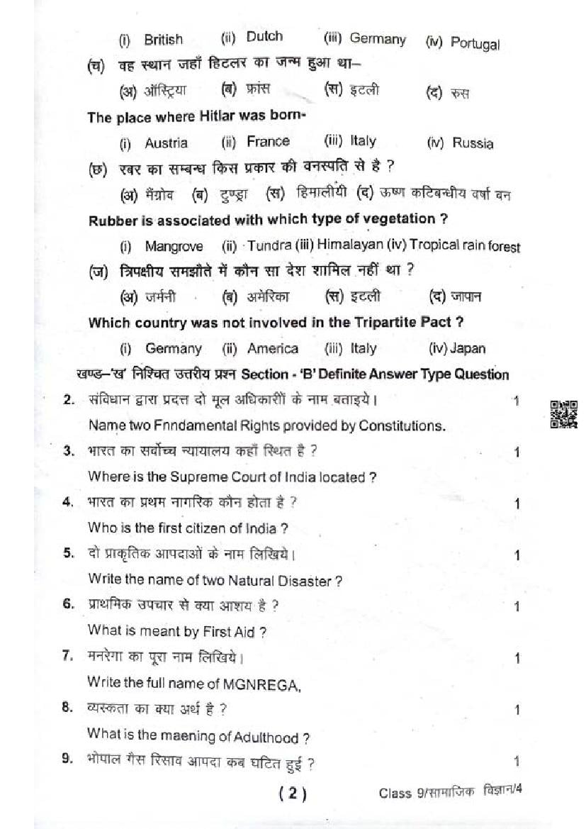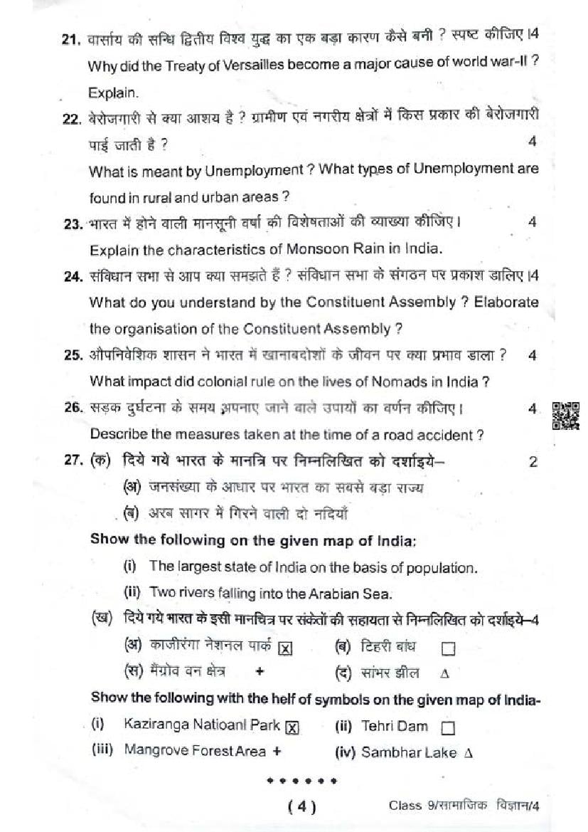 The Uttarakhand Board question paper of class 9 for Social Science is as follows.