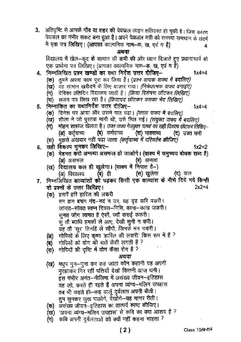 The UK Board Previous Year Question Paper for class 10th Hindi half yearly examination is as follows.