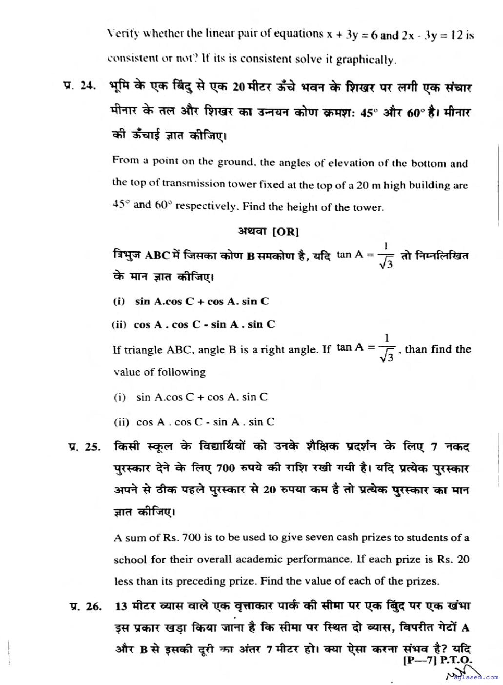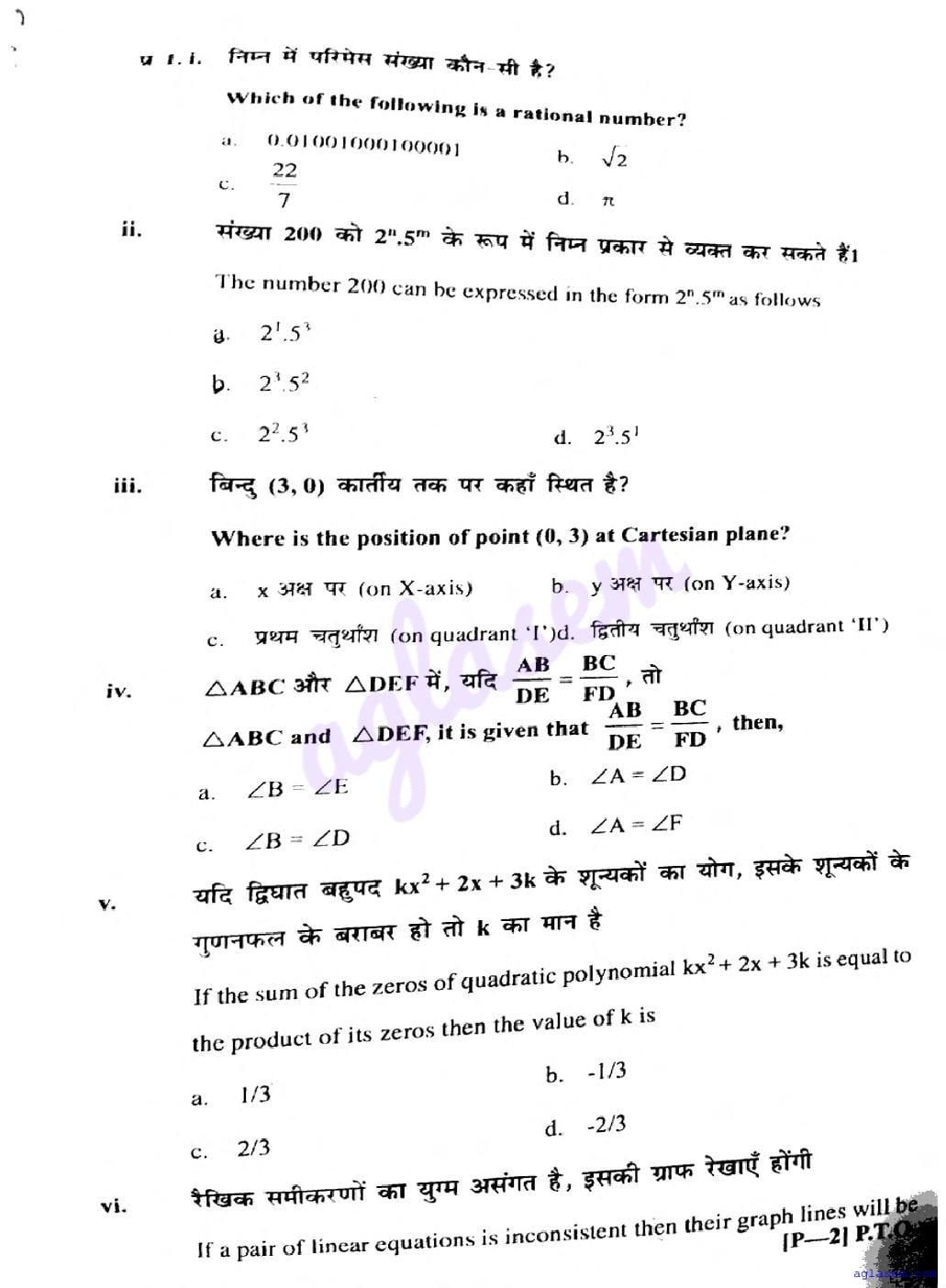 You can check the latest available mid term exam Maths question paper below-