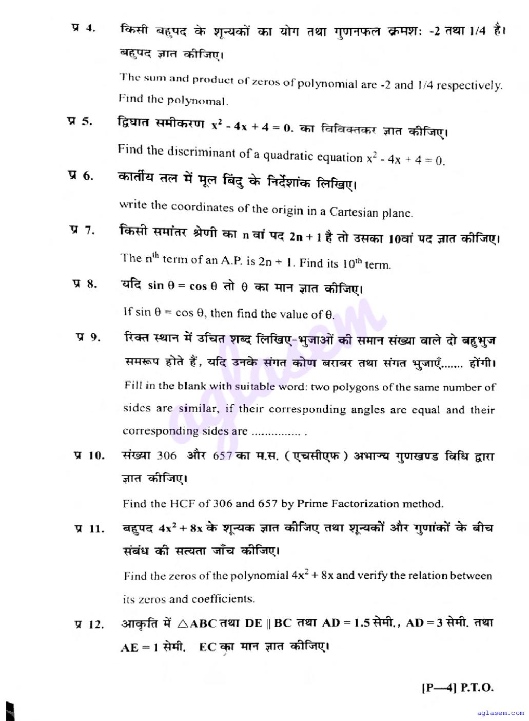 The UK Board Previous Year Question Paper for class 10th Maths half yearly examination is as follows.