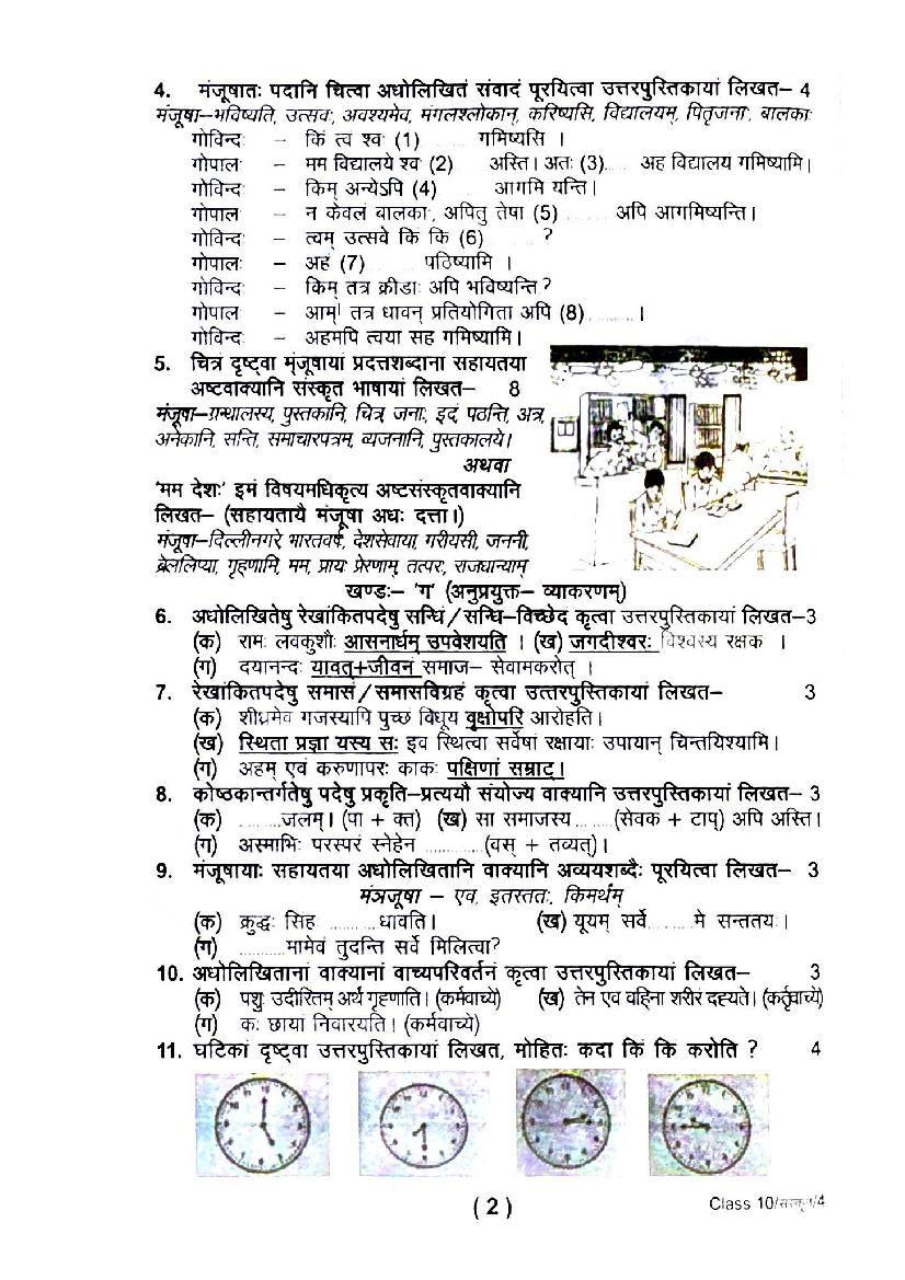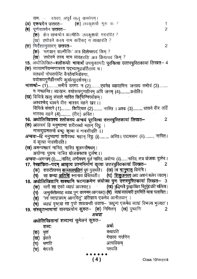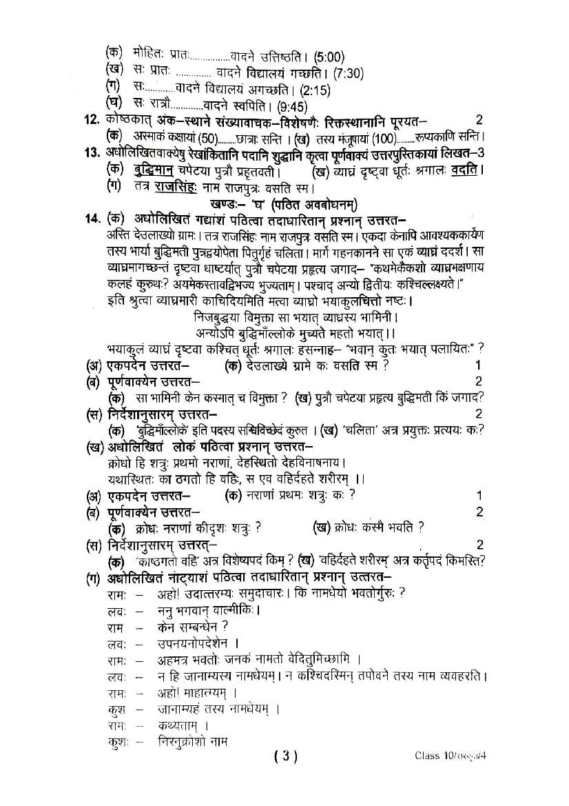 | Study Material Here | UK Board Previous Year Question Paper of Class 10 Sanskrit |